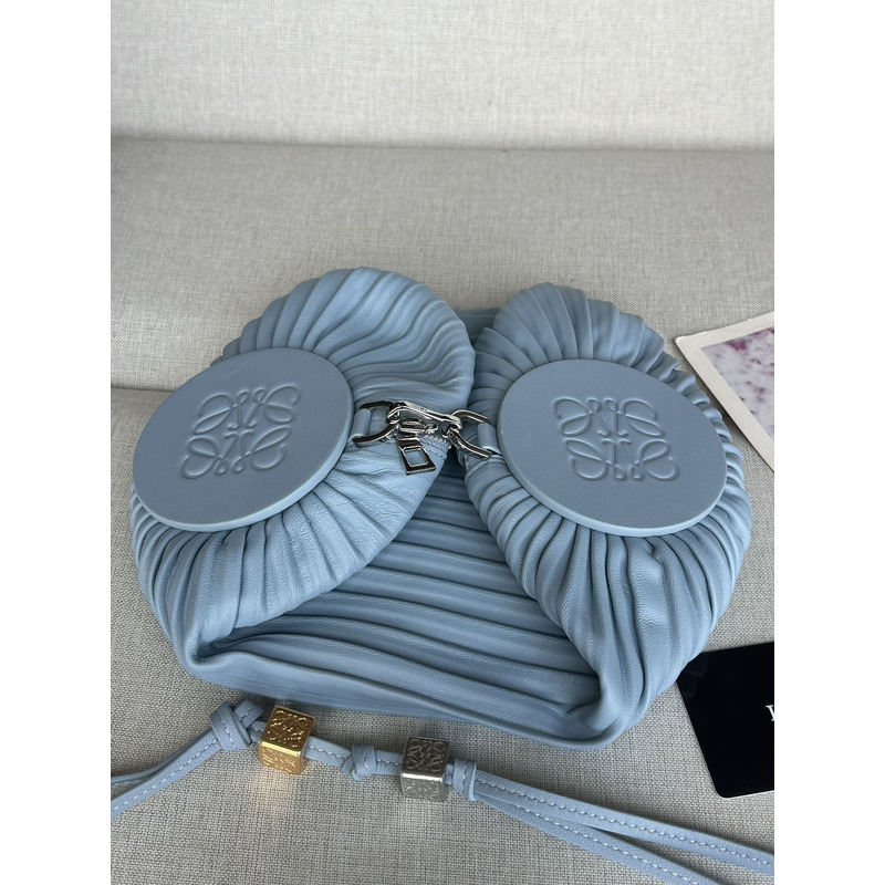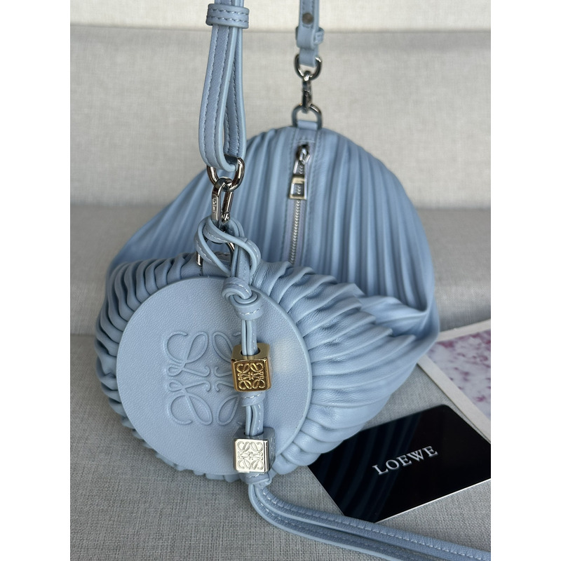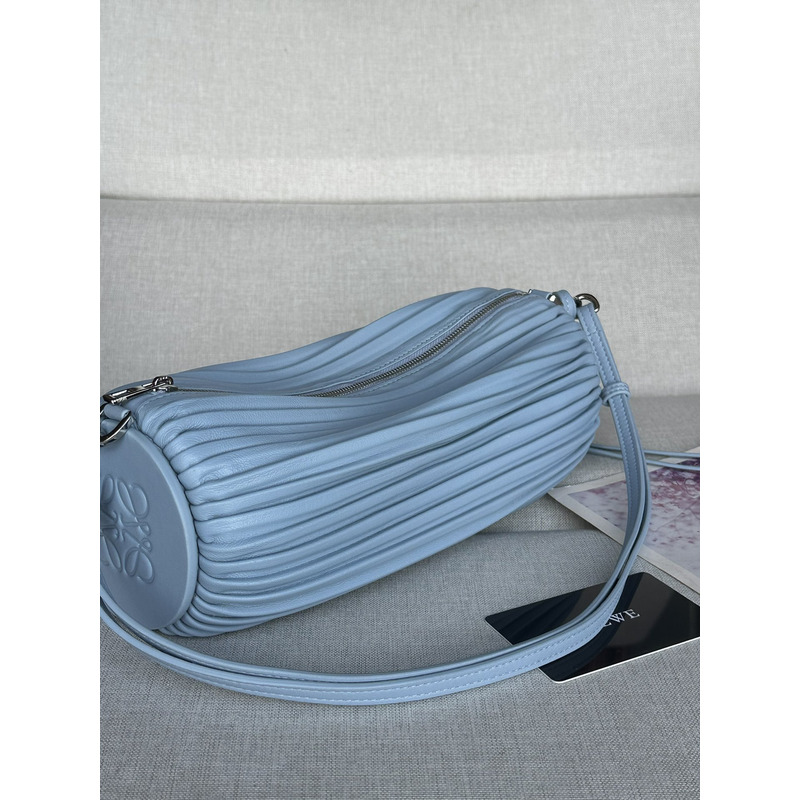Loewe Bracelet Pouch In Pleated Nappa Lambskin Light Blue