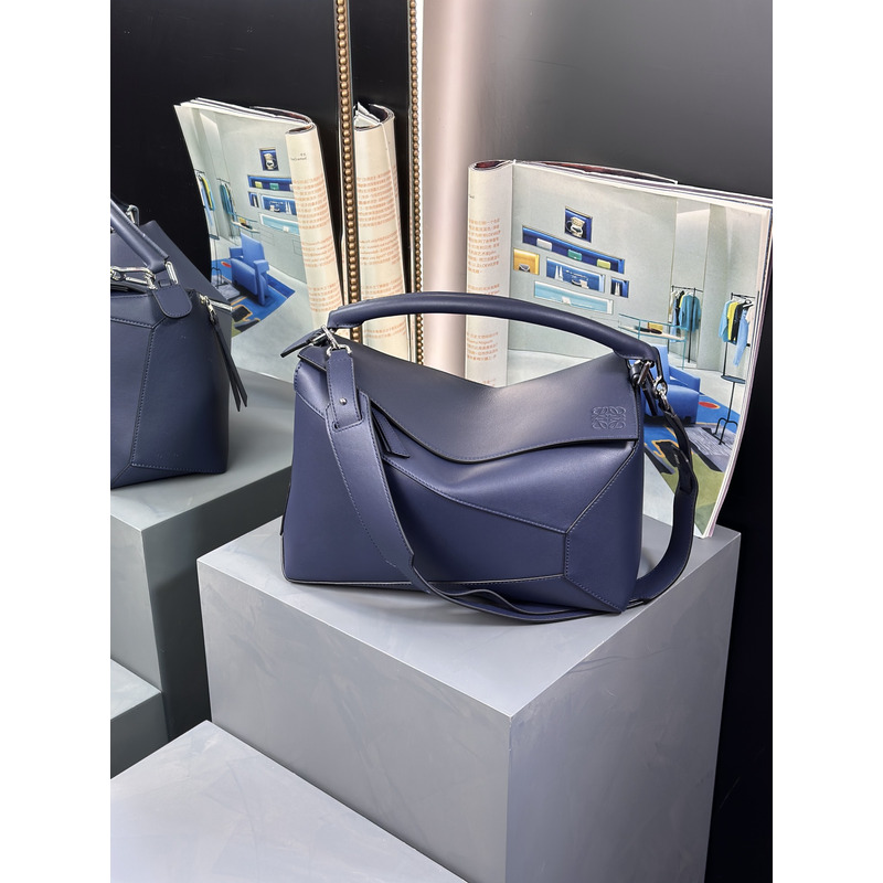Loewe Large Puzzle Edge Bag In Classic Calfskin Abyss Blue