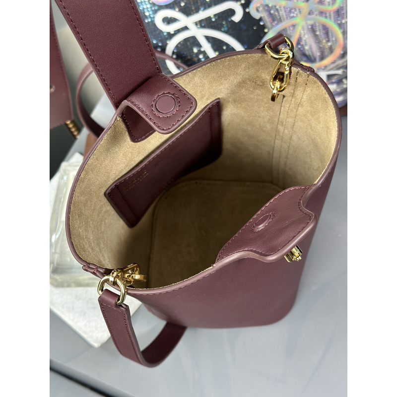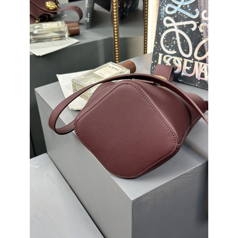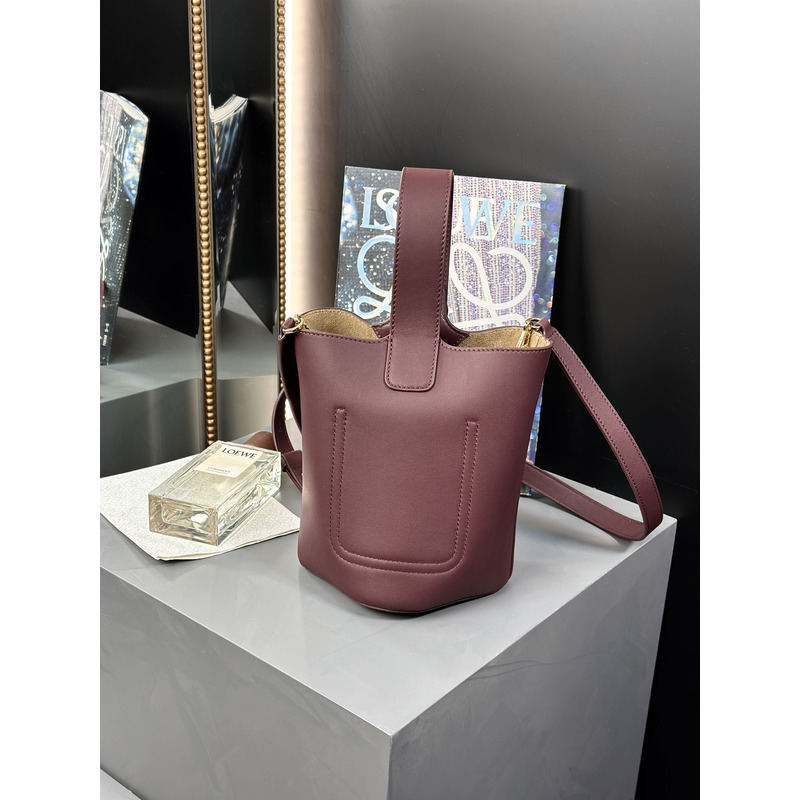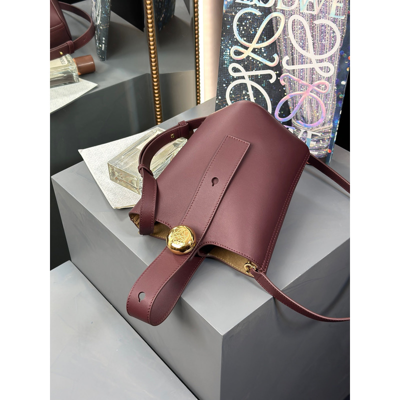 Loewe Mini Pebble Bucket In Soft Grained Calfskin Burgundy