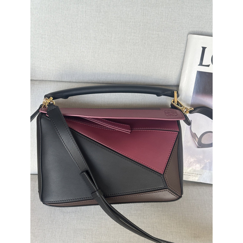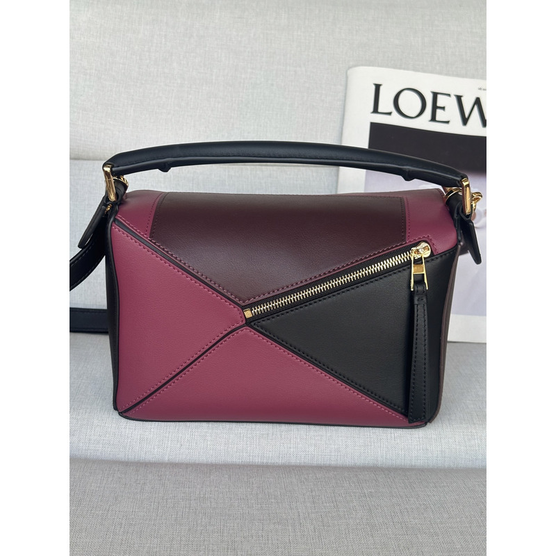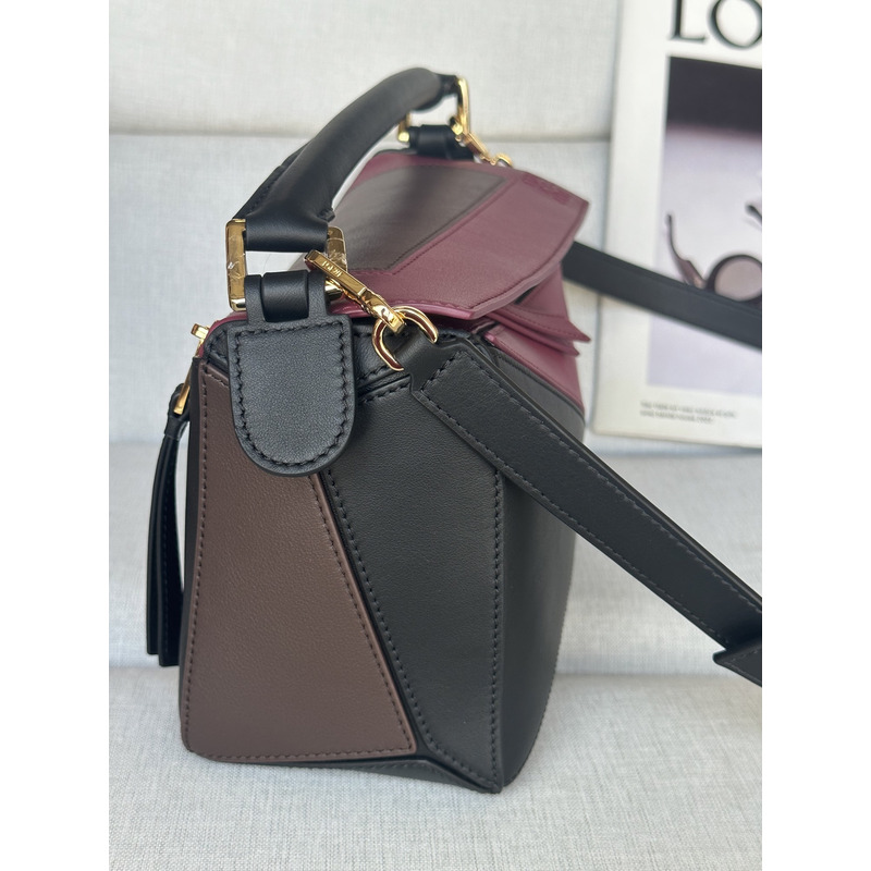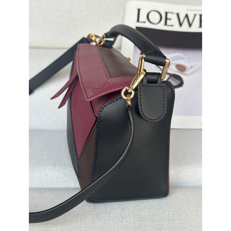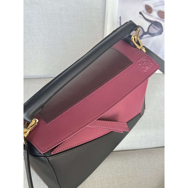 Loewe Small Puzzle Bag In Nappa Calfskin Black/Burgund