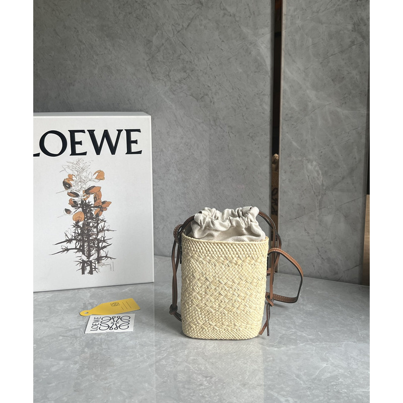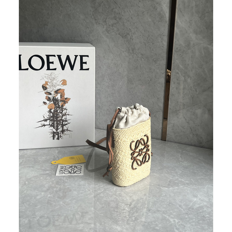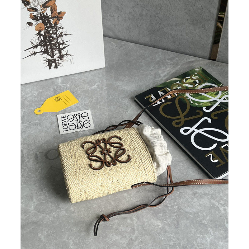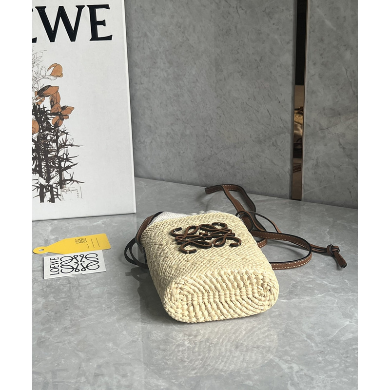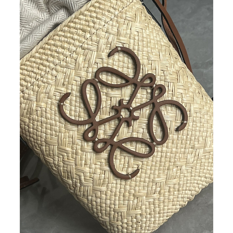 Loewe Square Pocket In Iraca Palm And Calfskin Natural/Tan