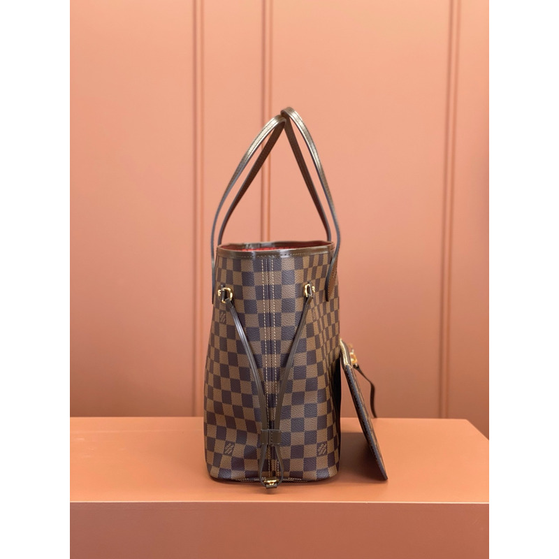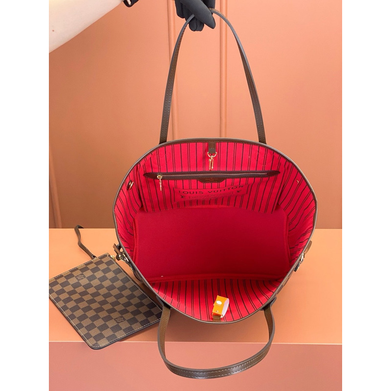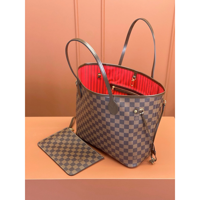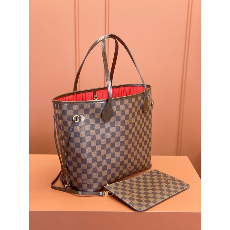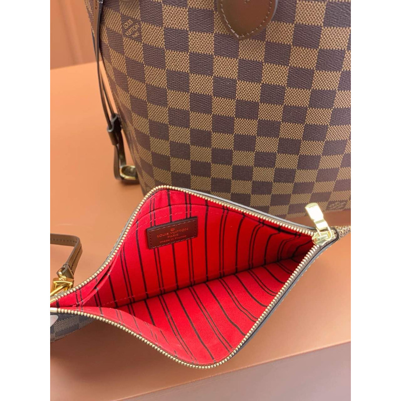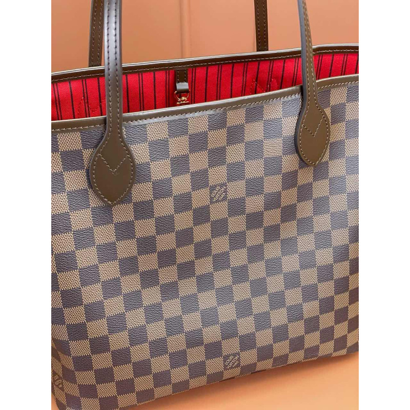Louis Vuitton Neverfull MM Damier Ebene Coated Cannas Cerise Red