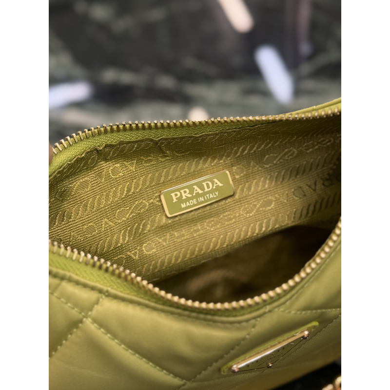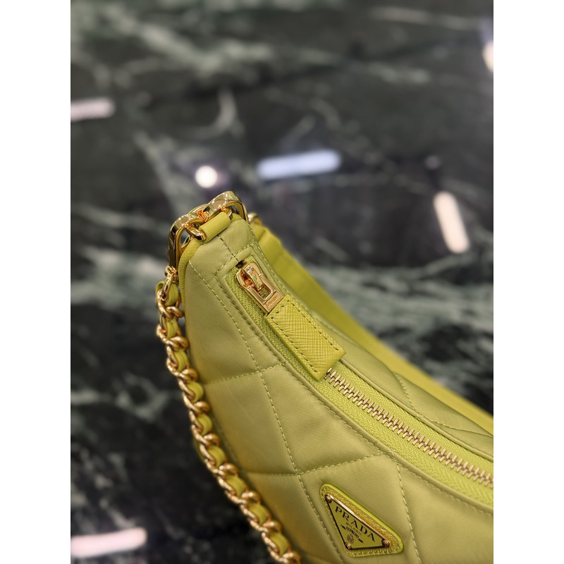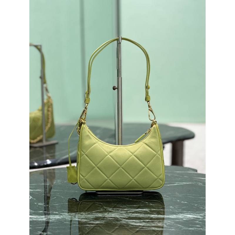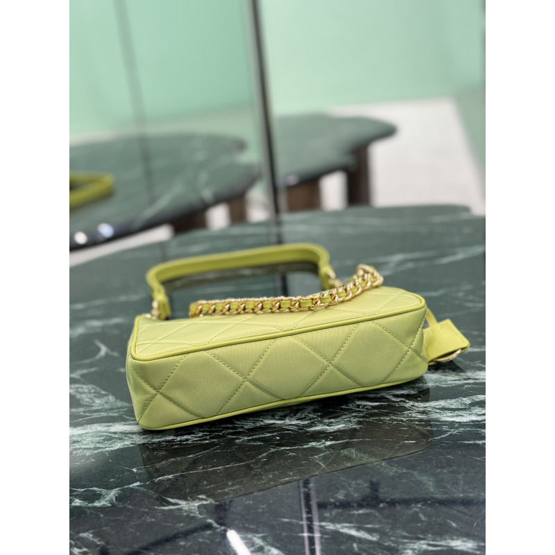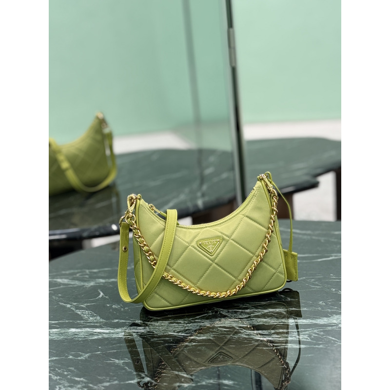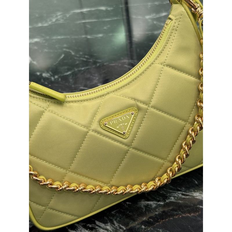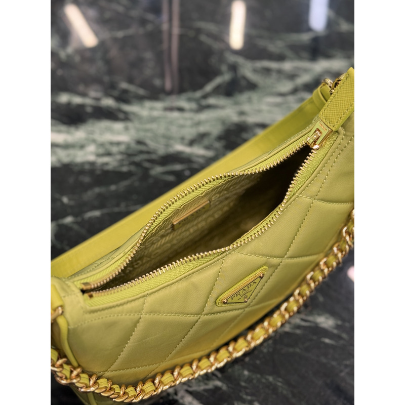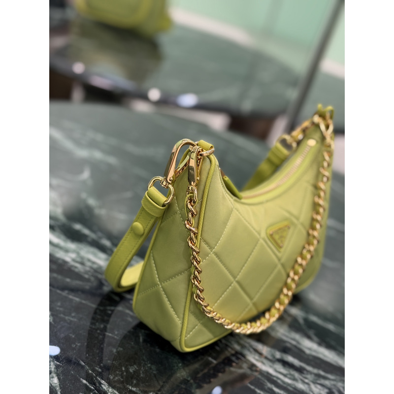 Prada Light Green Quilted Hobo Bag With Gold Chain