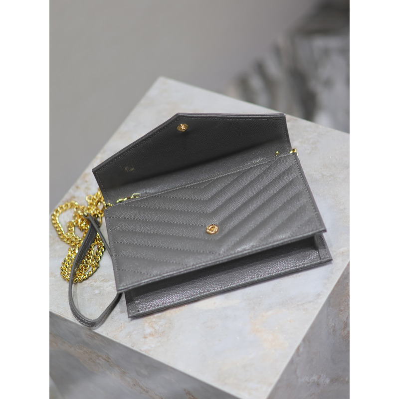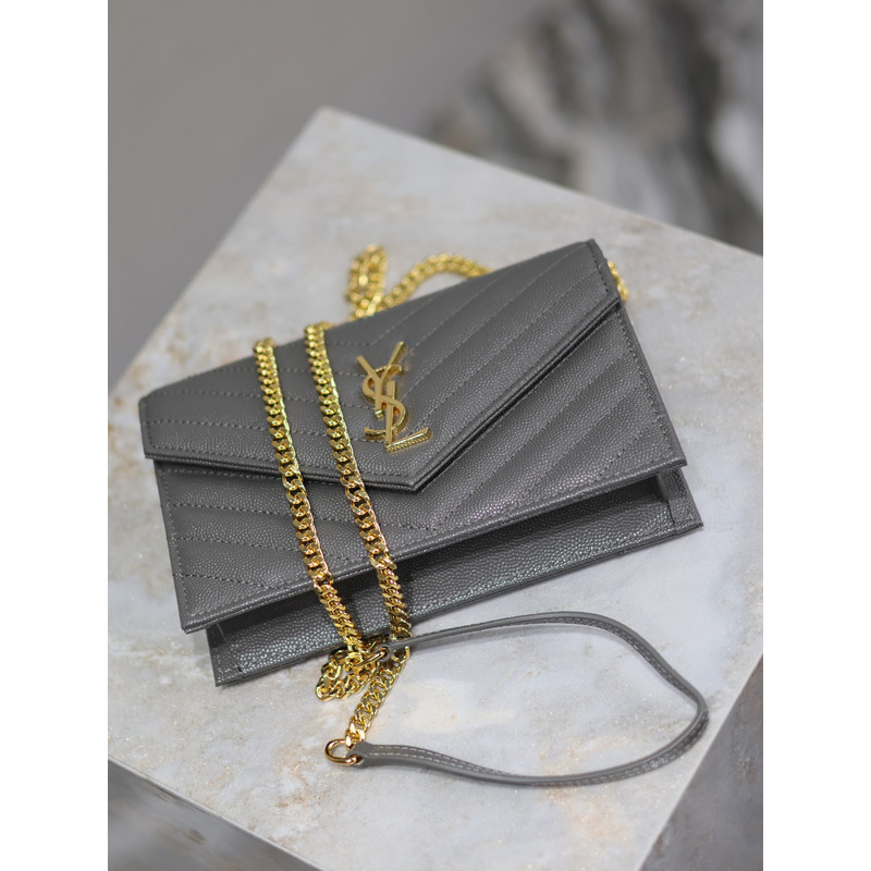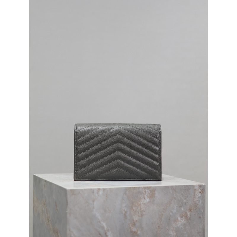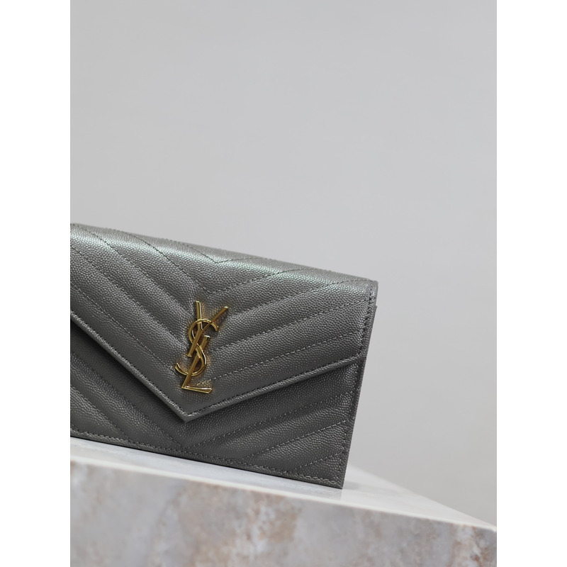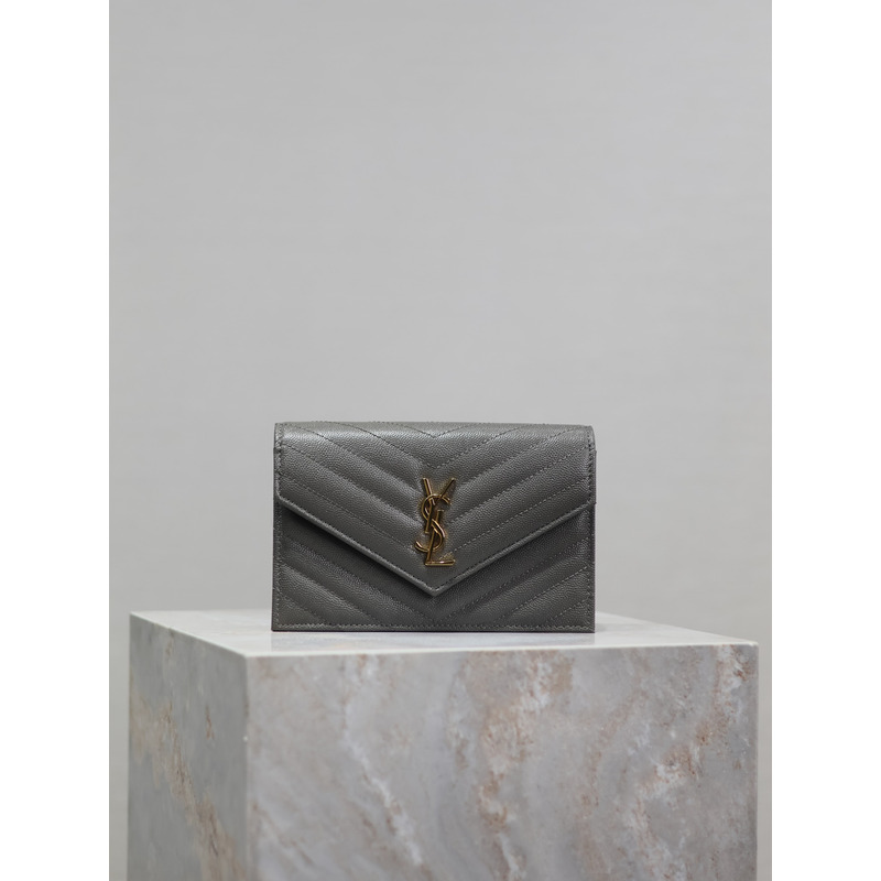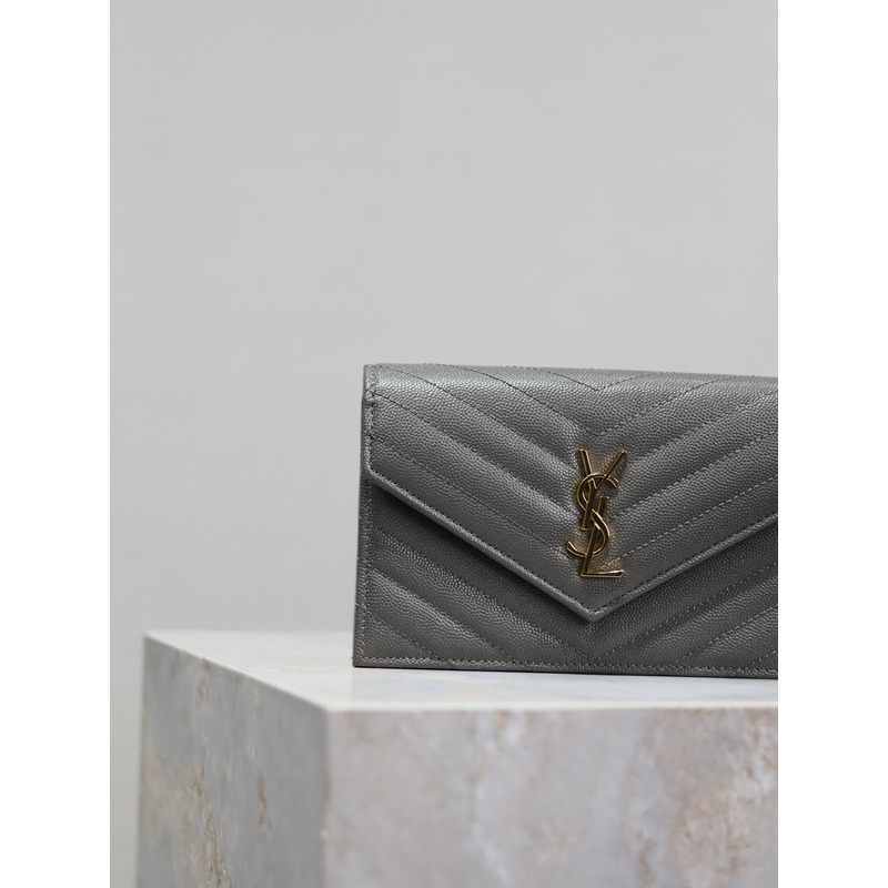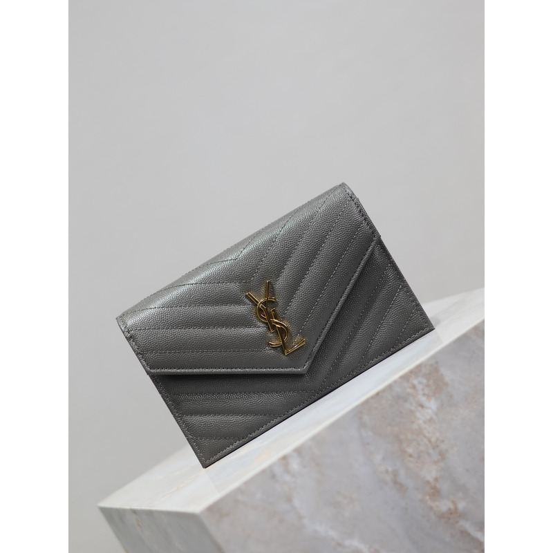 Saint Laurent Cassandre Matelassé Large Flap Wallet In Grey Leather