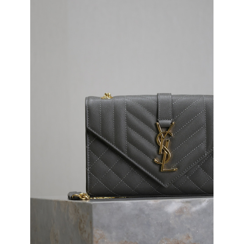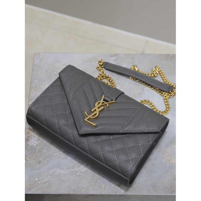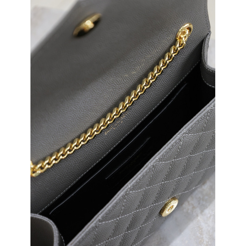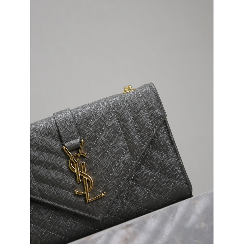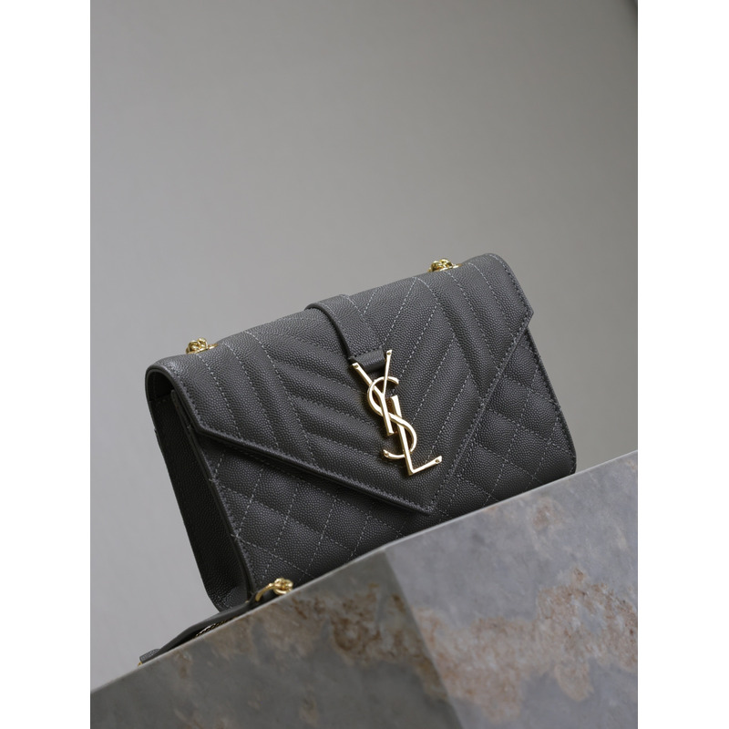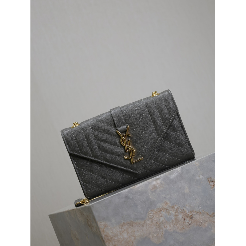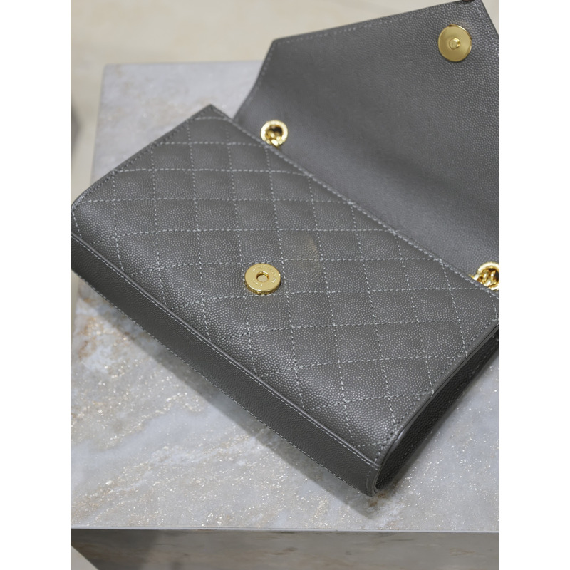 Saint Laurent Envelope Medium Matelassé Leather Shoulder Bag In Grey