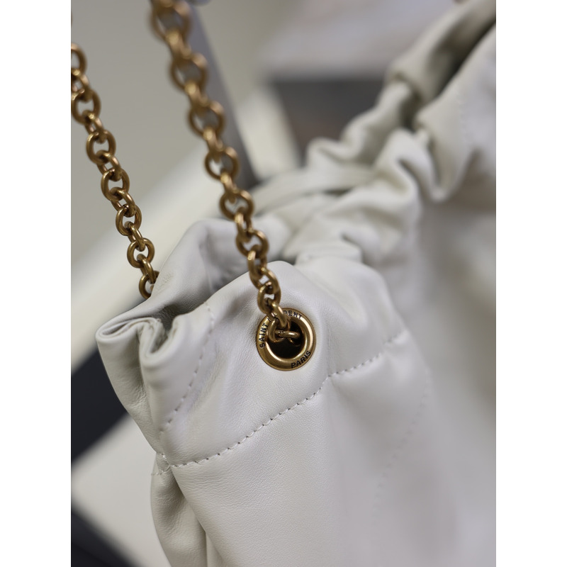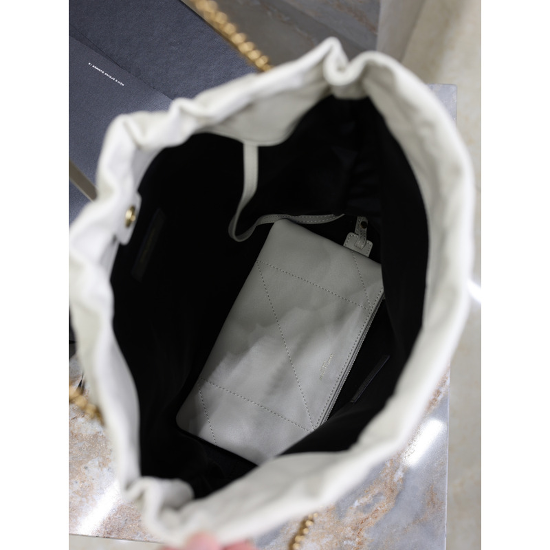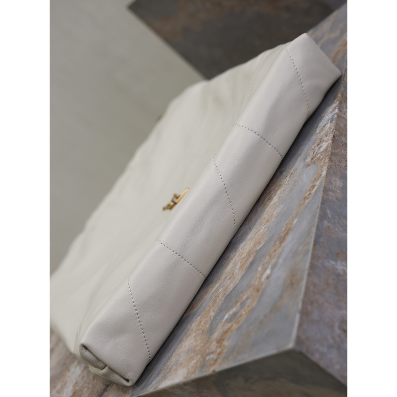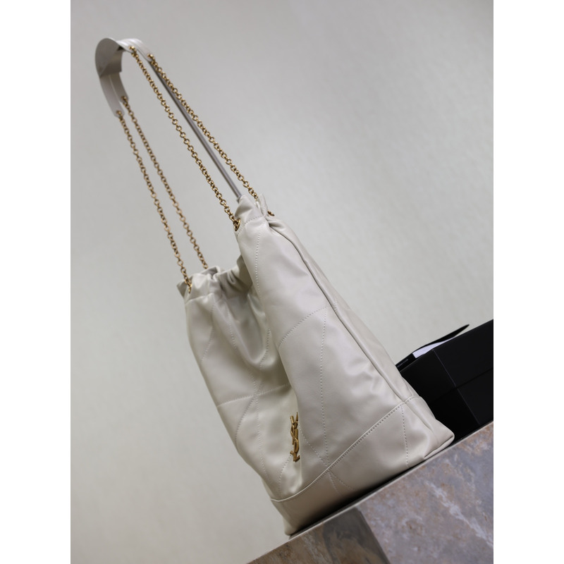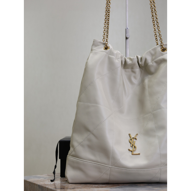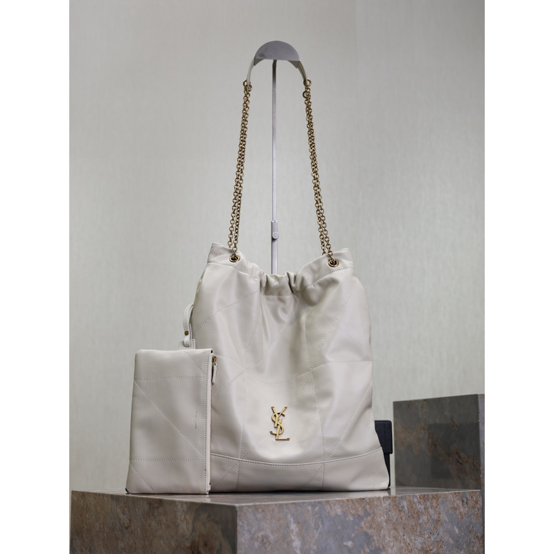 Saint Laurent Jamie Large Pochon In Lambskin Blanc Vintage