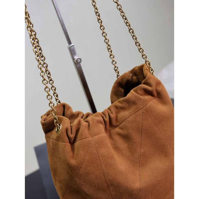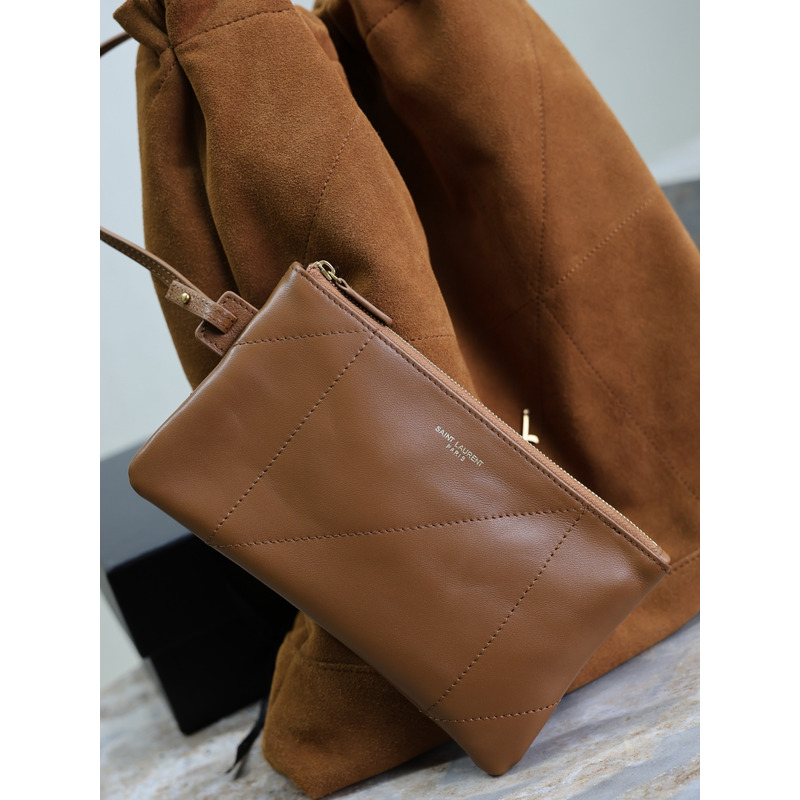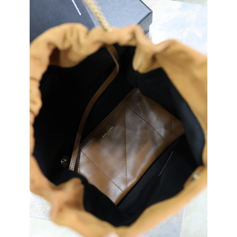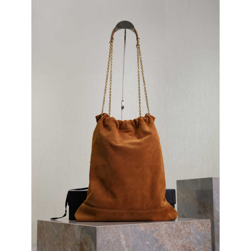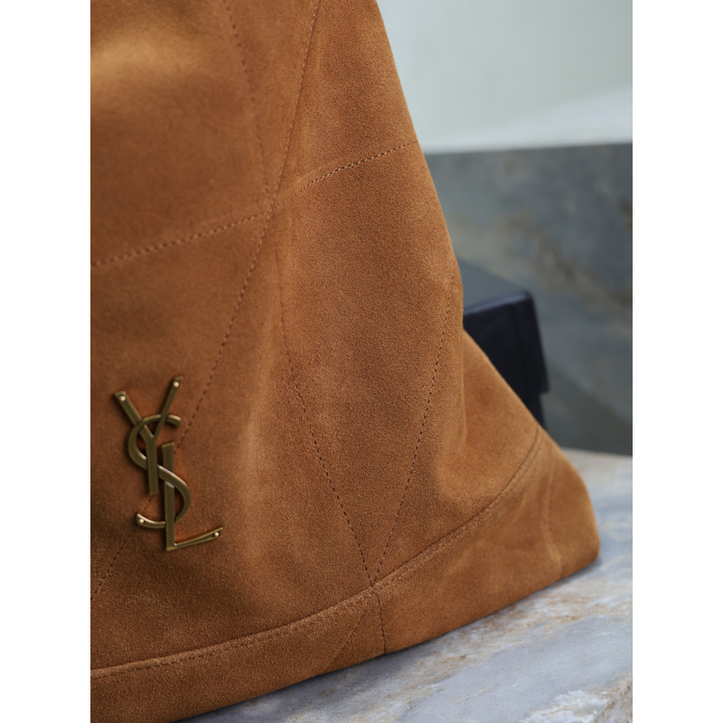 Saint Laurent Jamie Large Pochon In Suede Warm Caramel Cognac