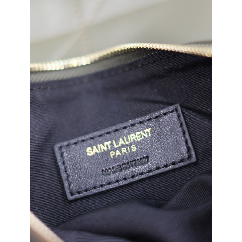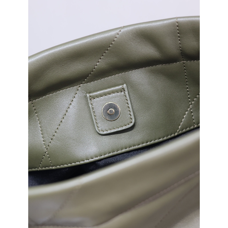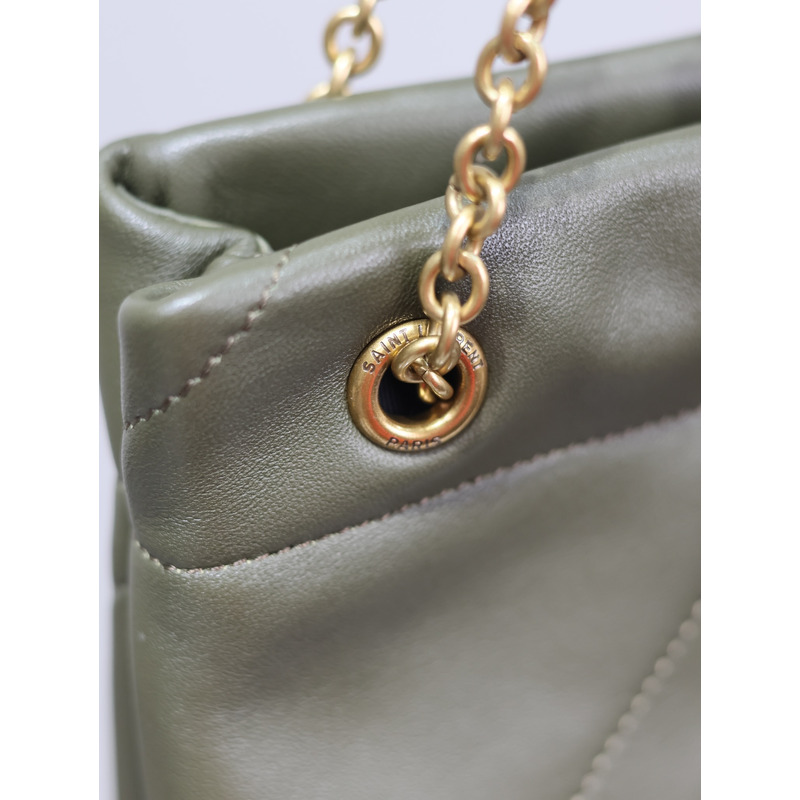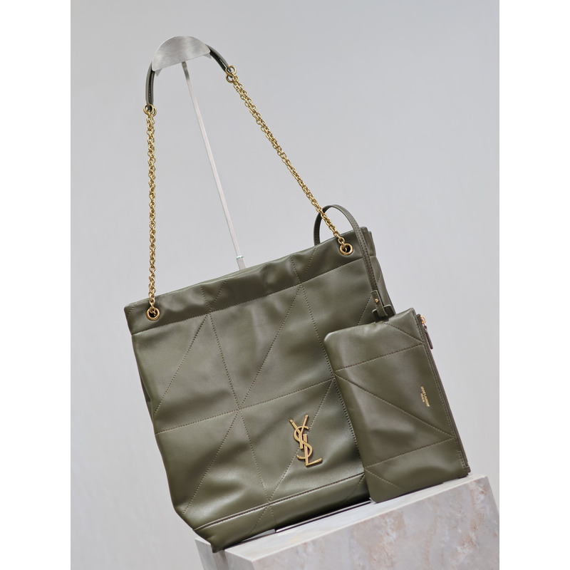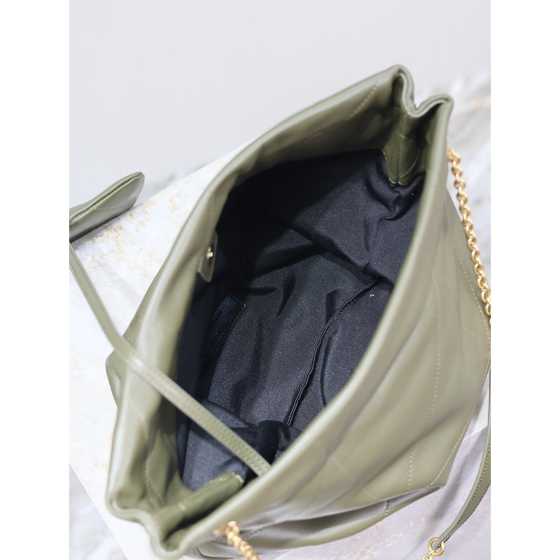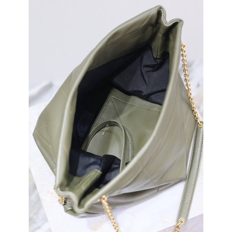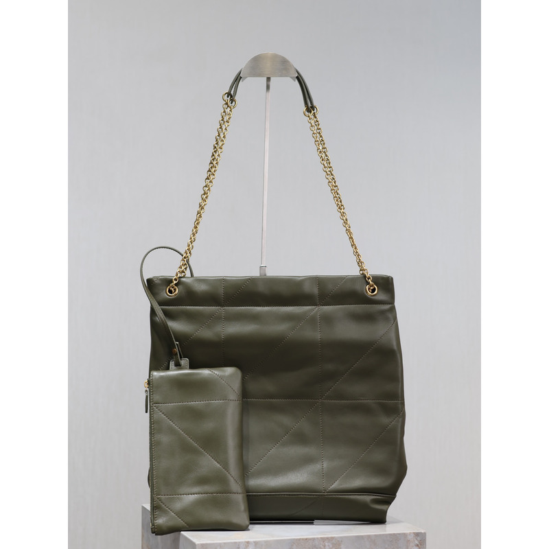 Saint Laurent Military Green Quilted Leather Tote Bag With Pouch And Gold Chain
