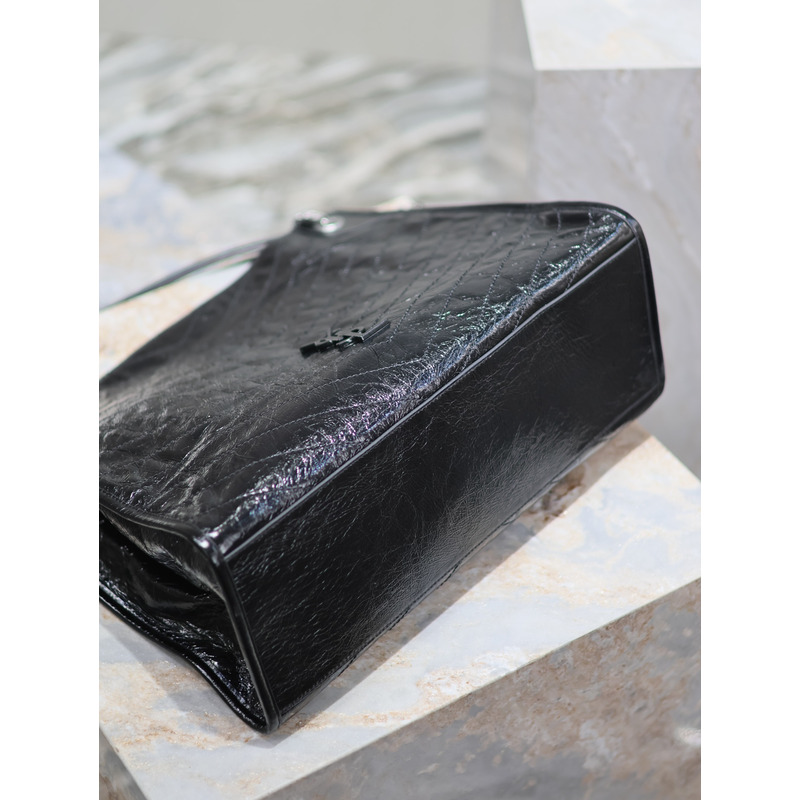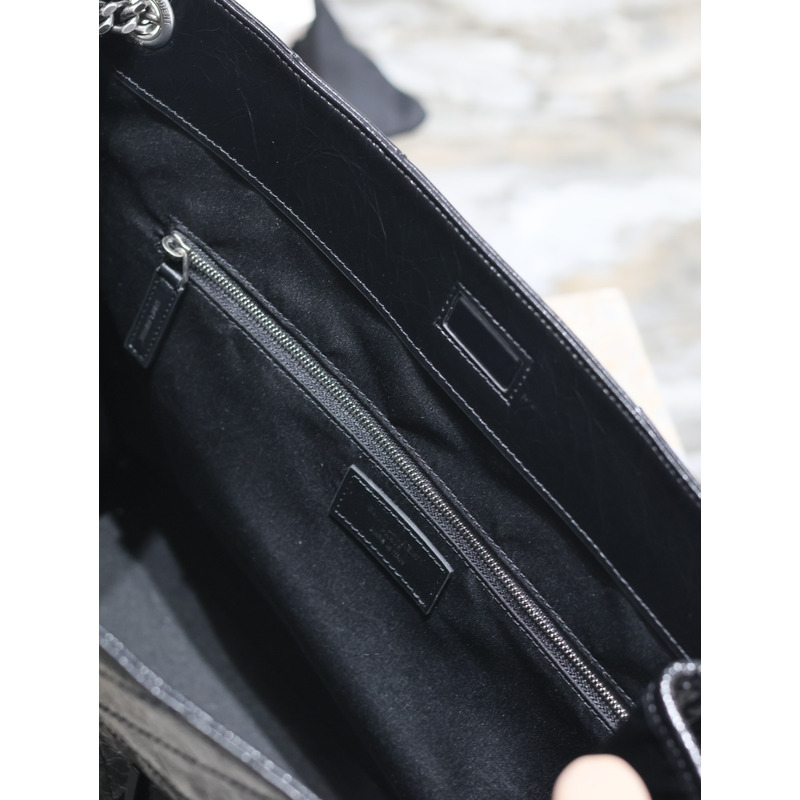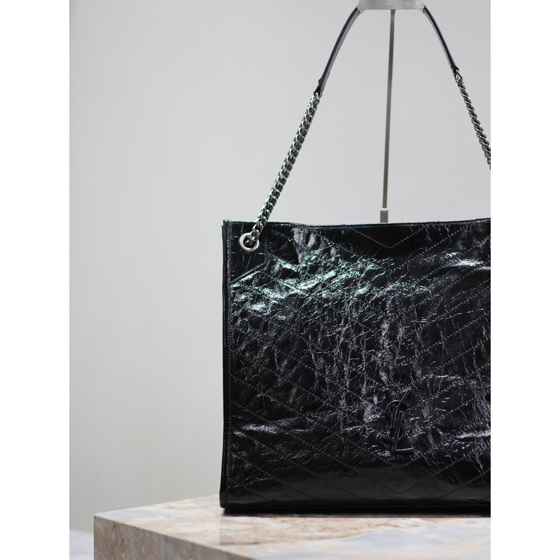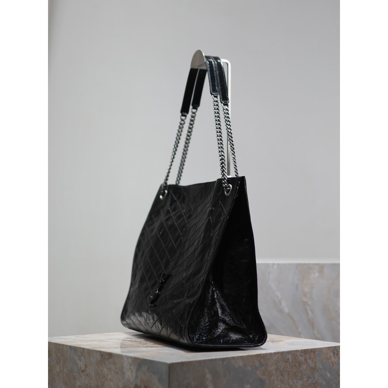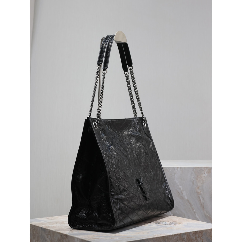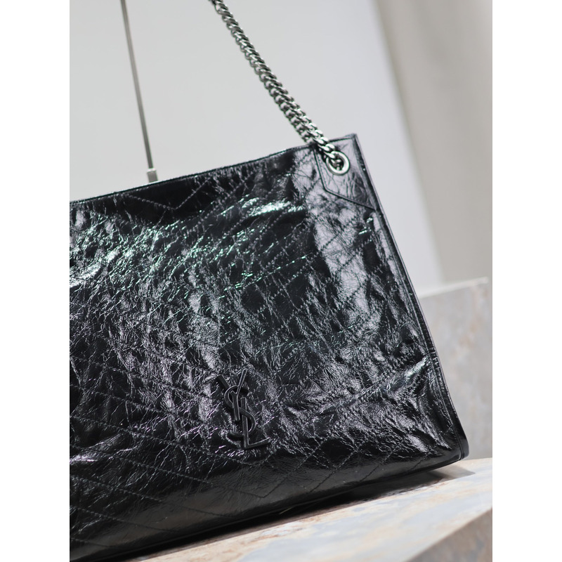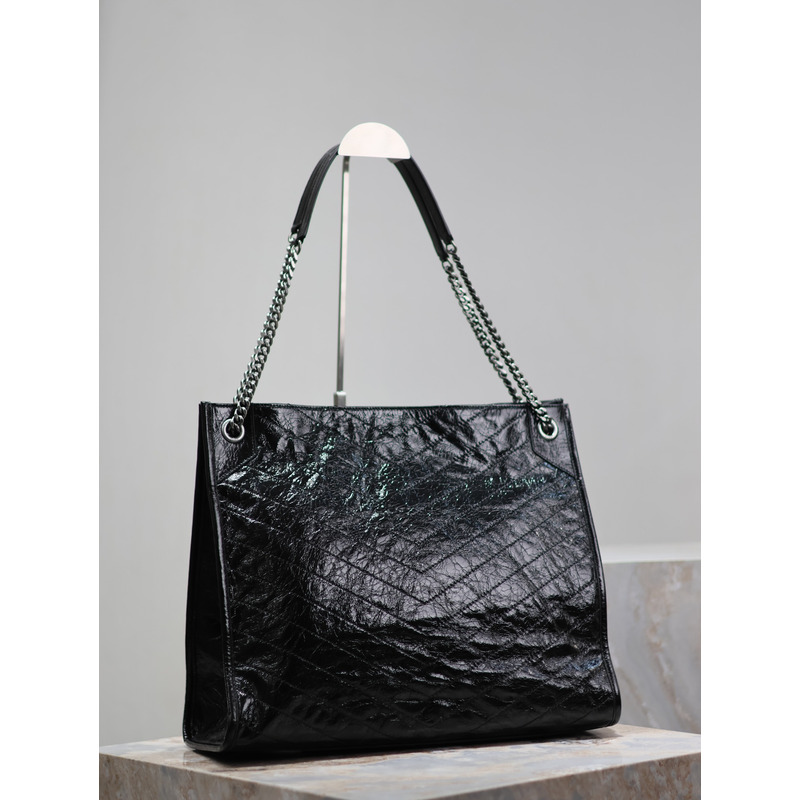 Saint Laurent Niki Large Shopping In Crinkled Vintage Leather Black