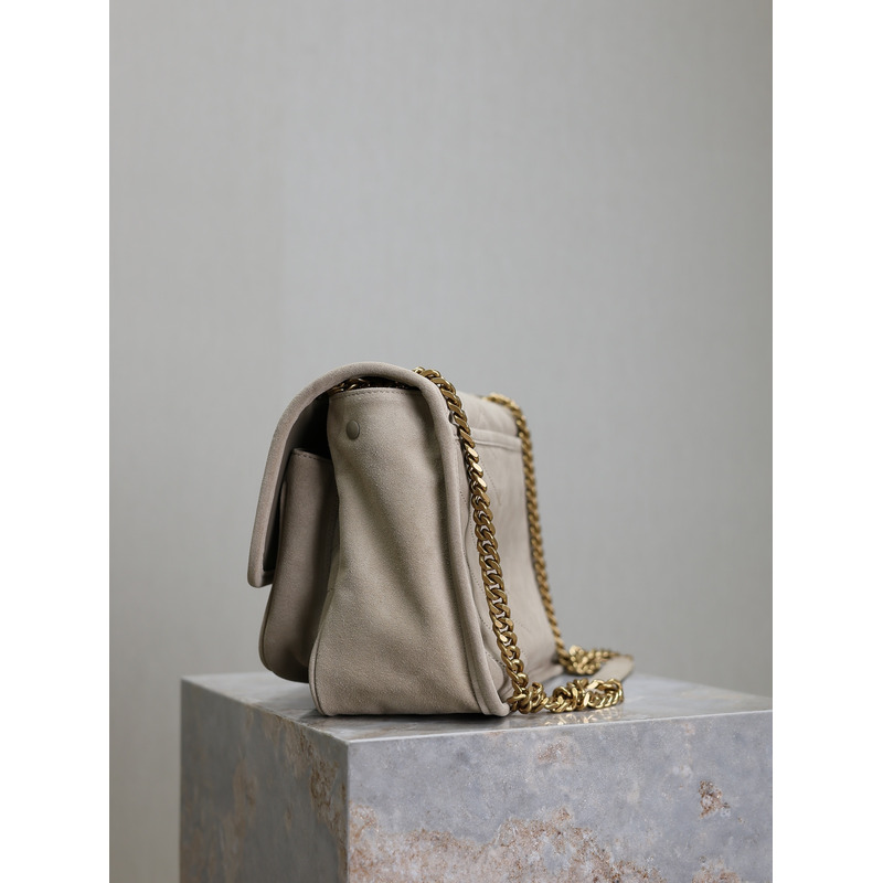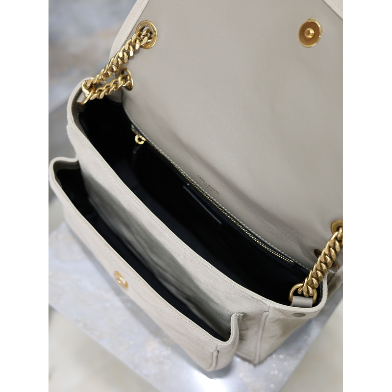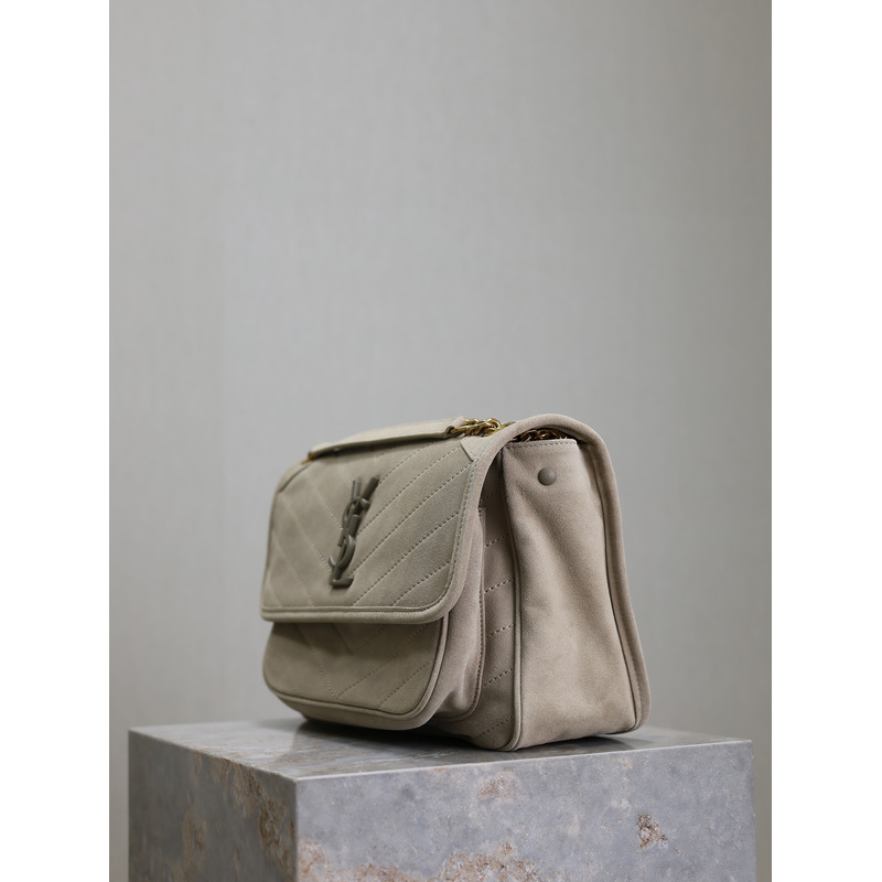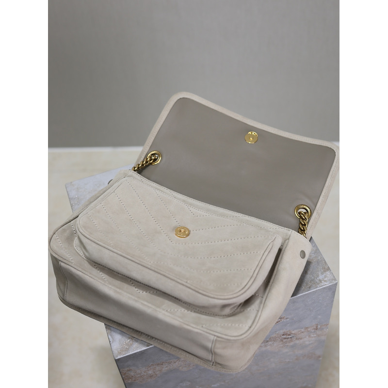 Saint Laurent Niki Medium Matelassé Shoulder Bag Suede Light Musk