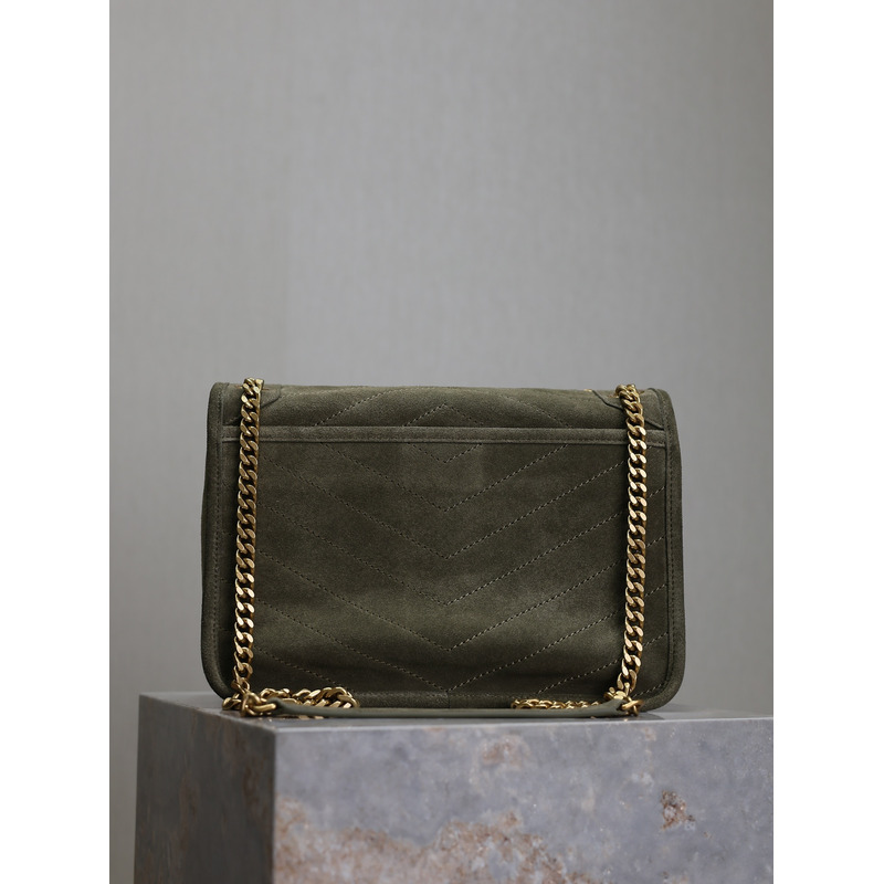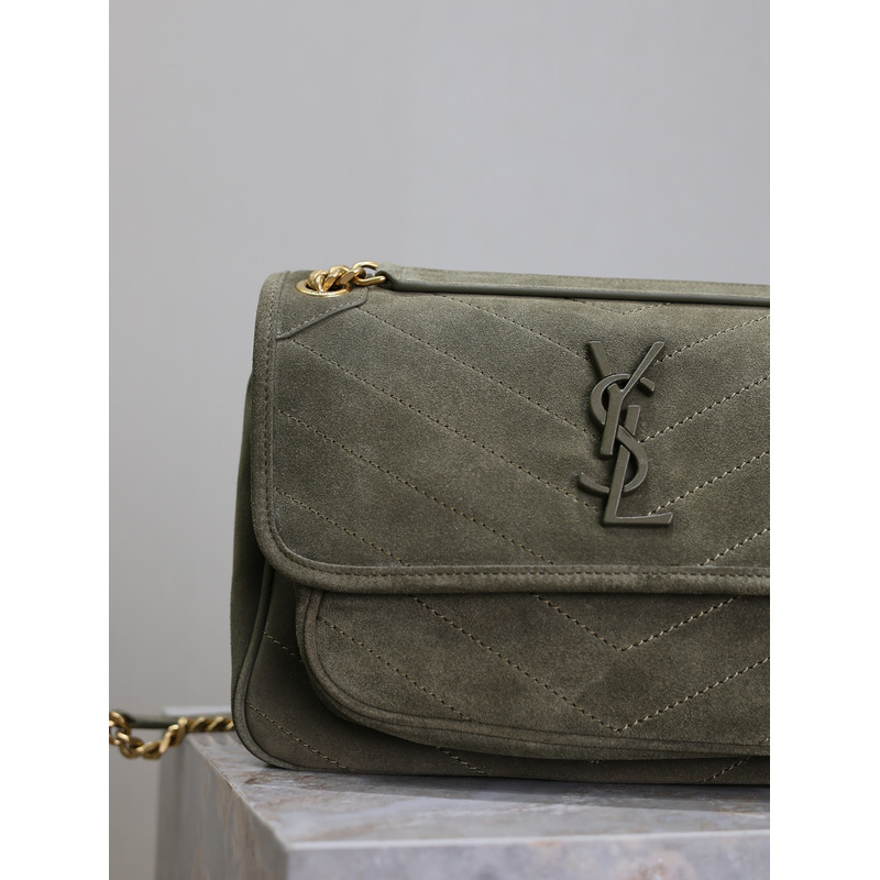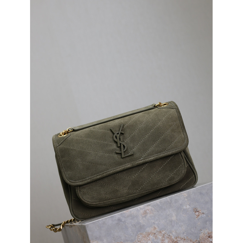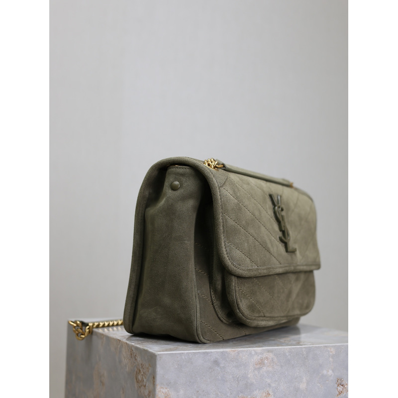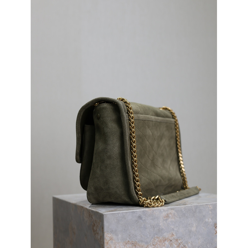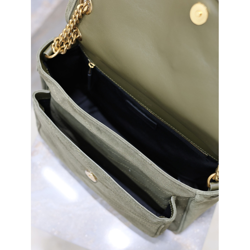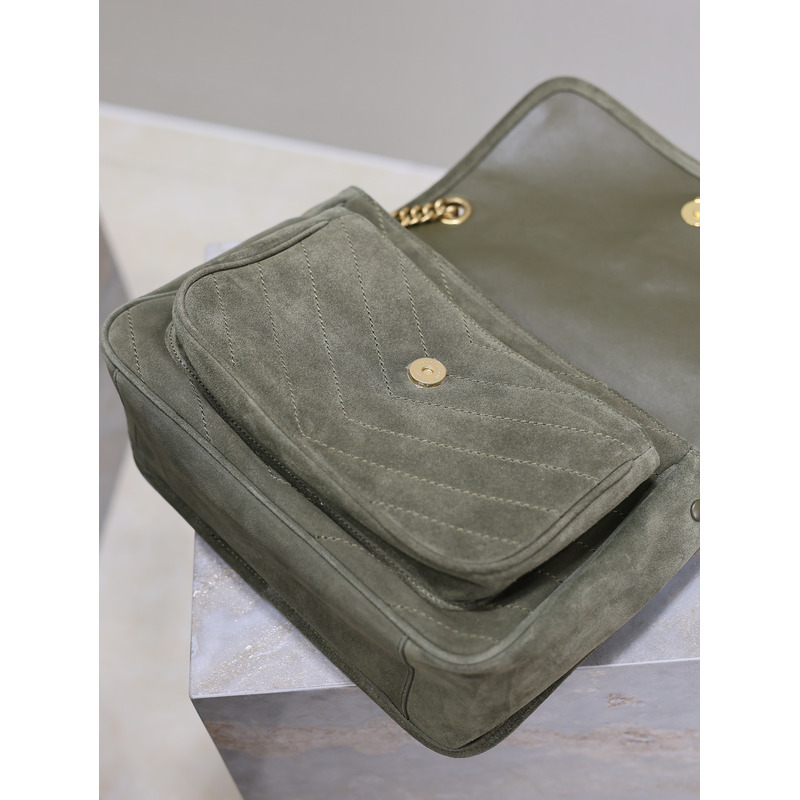 Saint Laurent Niki Medium Matelassé Shoulder Bag Suede Sage Green