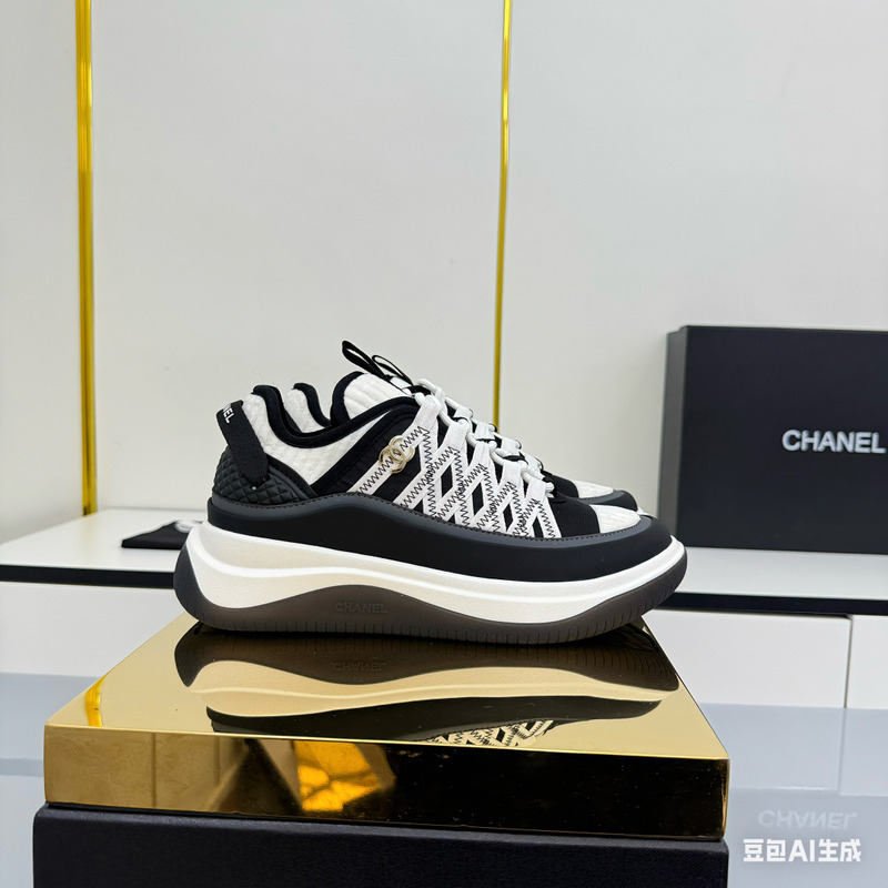Chanel Mesh & Suede Leather CC Sneakers In White/Black