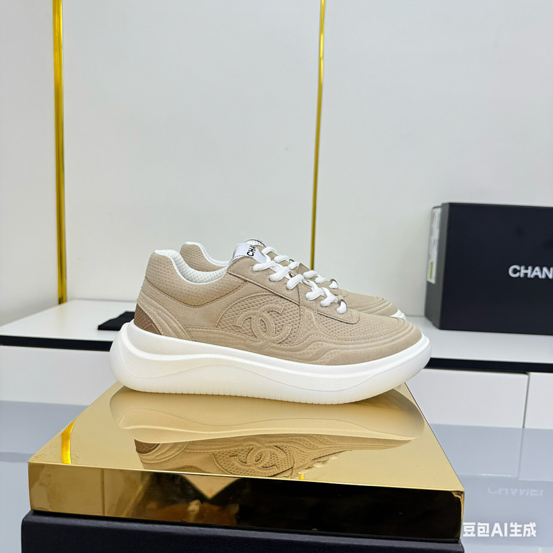 Chanel Leather & Mesh CC Sneakers In Beige