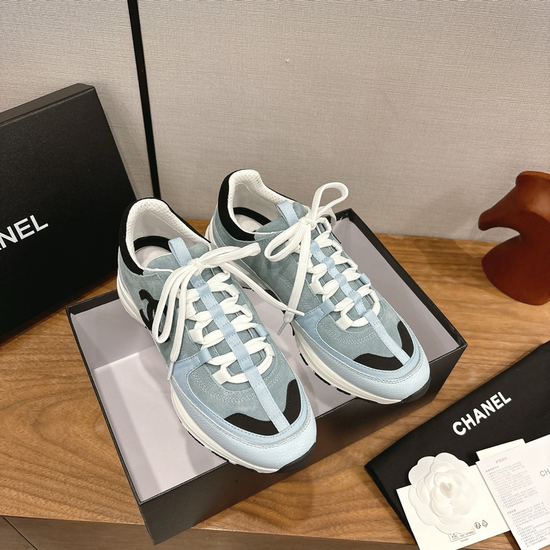 Chanel Leather & Suede Sneaker In Light Blue & Black