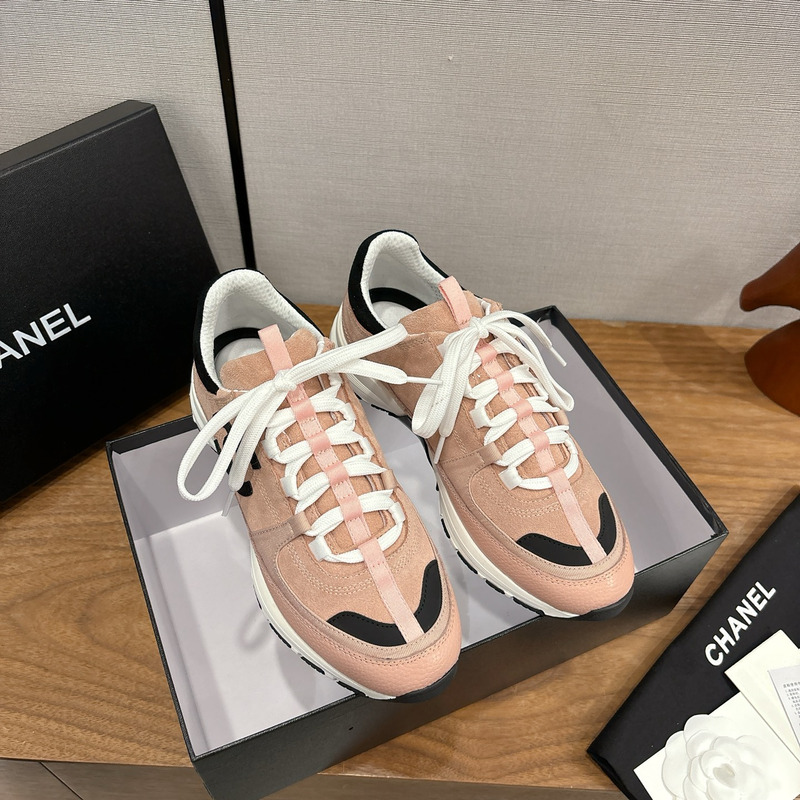 Chanel Leather & Suede Sneaker In Light Pink & Black