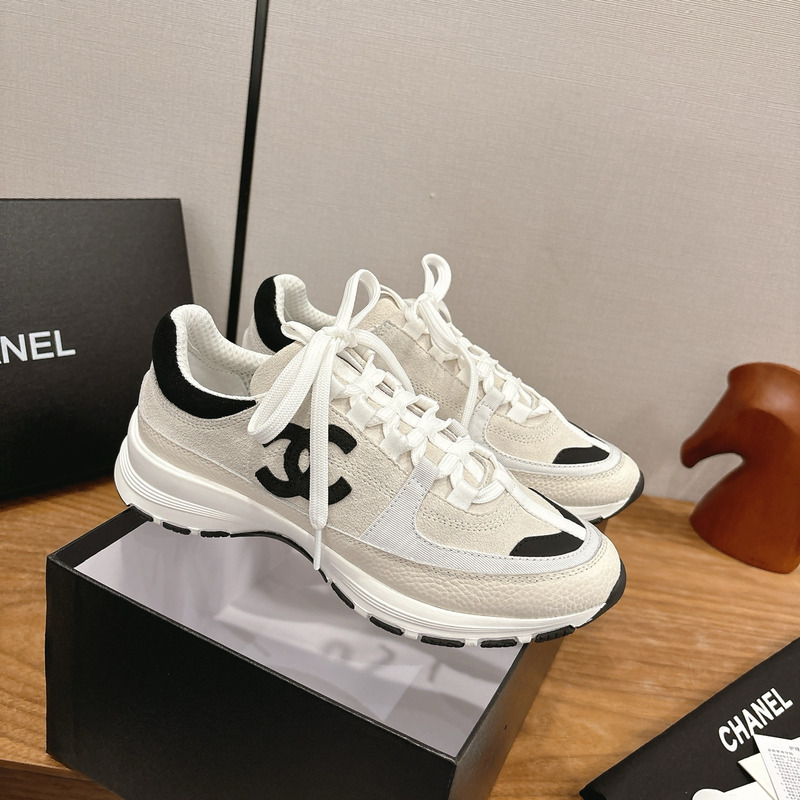 Chanel Suede & Leather Sneakers In White
