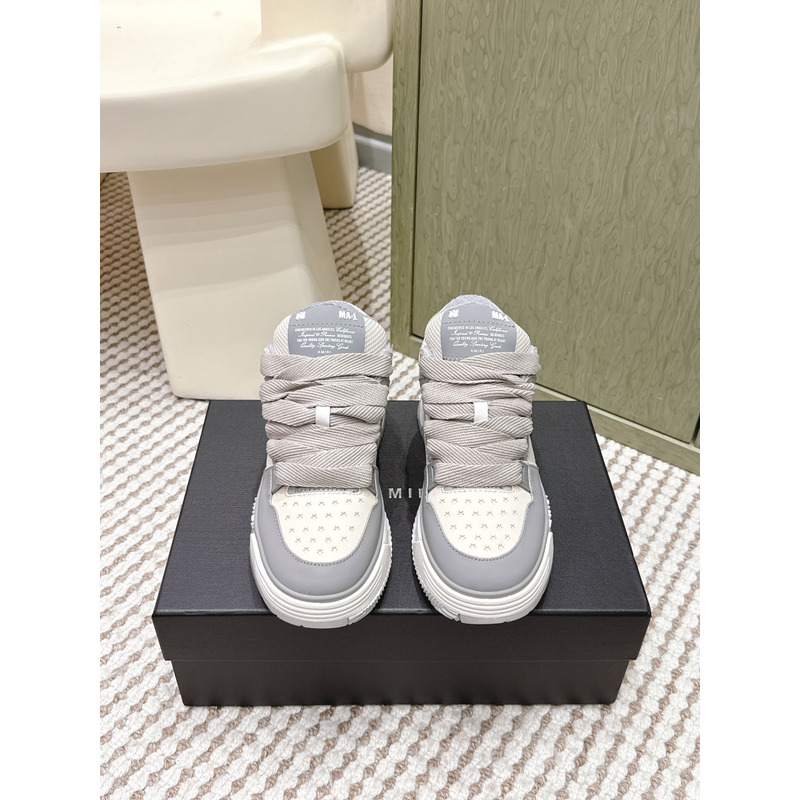 Amiri Metalli Leather Low-Top Sneakers Grey&White