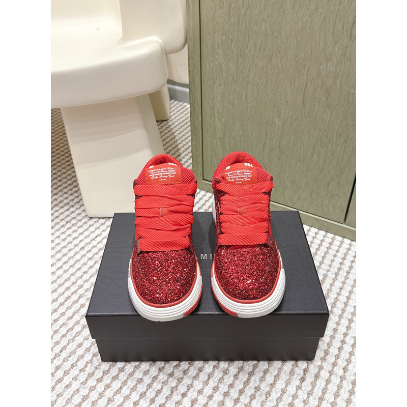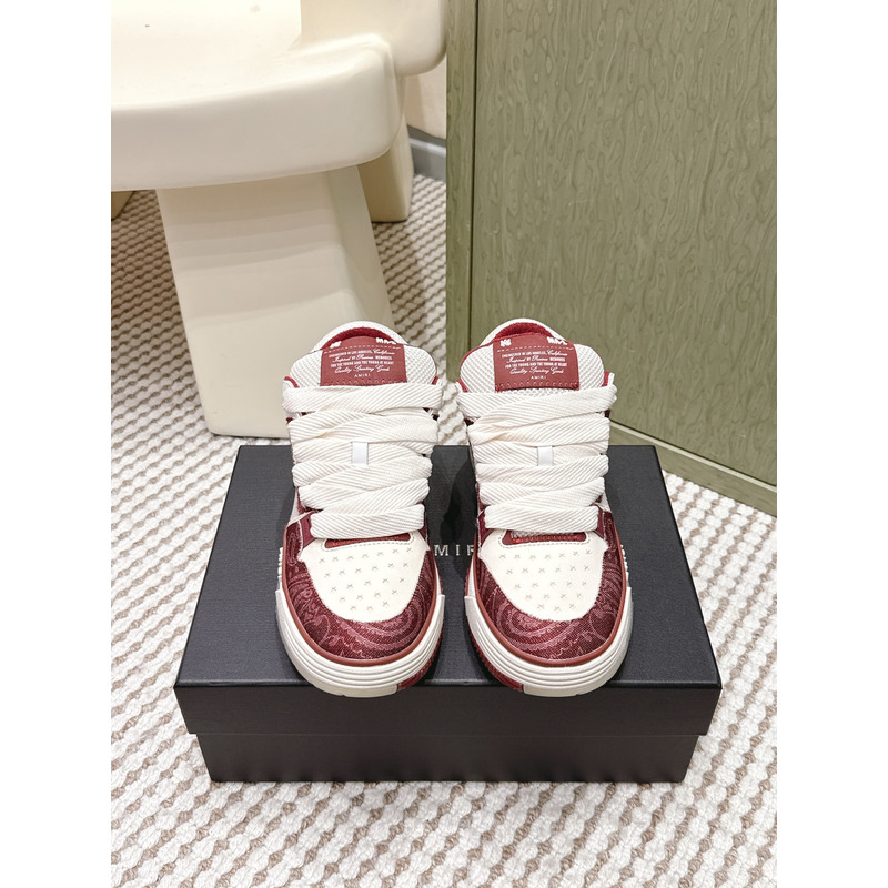 Amiri Metalli Leather Low-Top Sneakers White&Burgundy