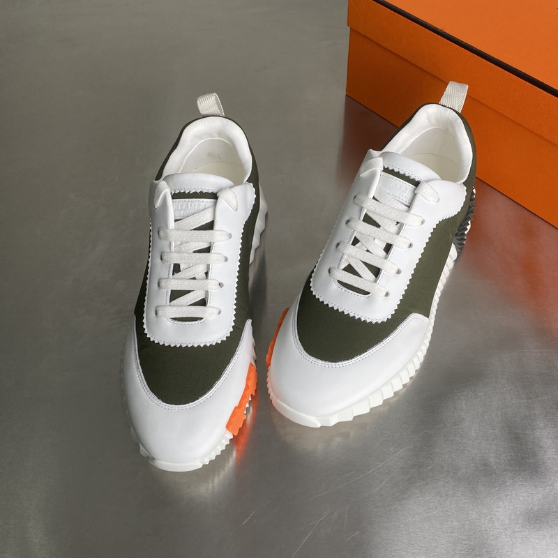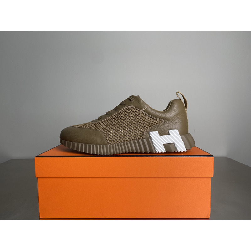Hermes Bouncing Sneaker In Graphic Mesh And Suede Goatskin Khaki