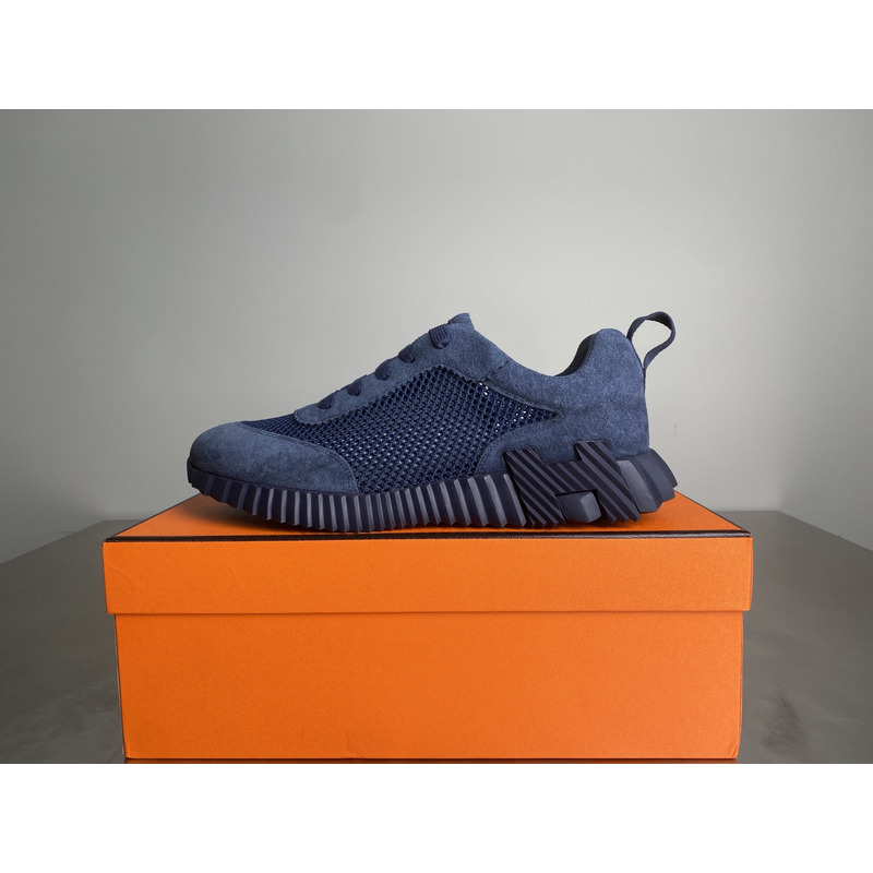 Hermes Bouncing Sneaker In Graphic Mesh And Suede Goatskin Dark Blue