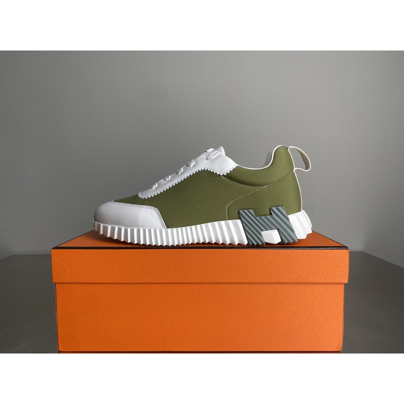 Hermes Bouncing Sneaker In Ripstop Fabric And Calfskin Green