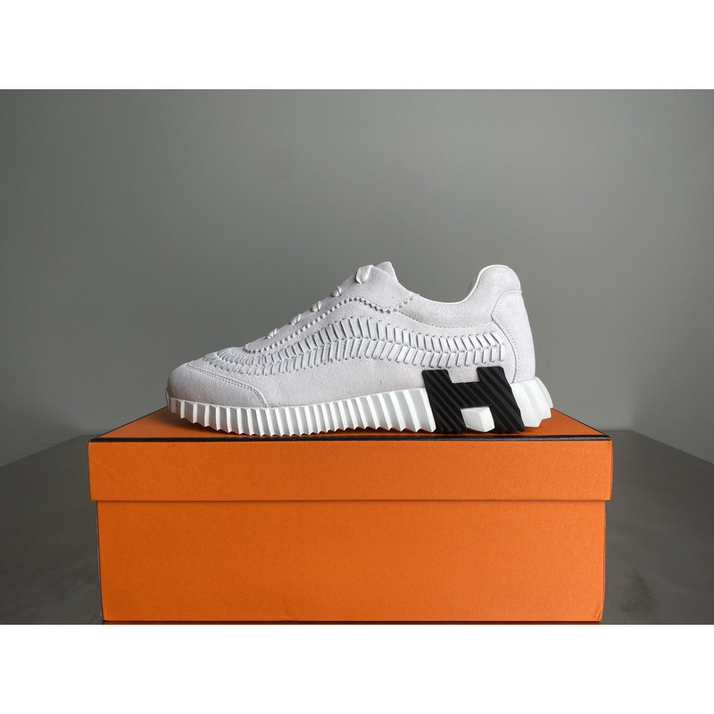 Hermes Bouncing Sneaker In Suede Goatskin White And Black