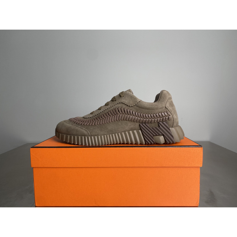 Hermes Bouncing Sneaker In Suede Goatskin Khaki