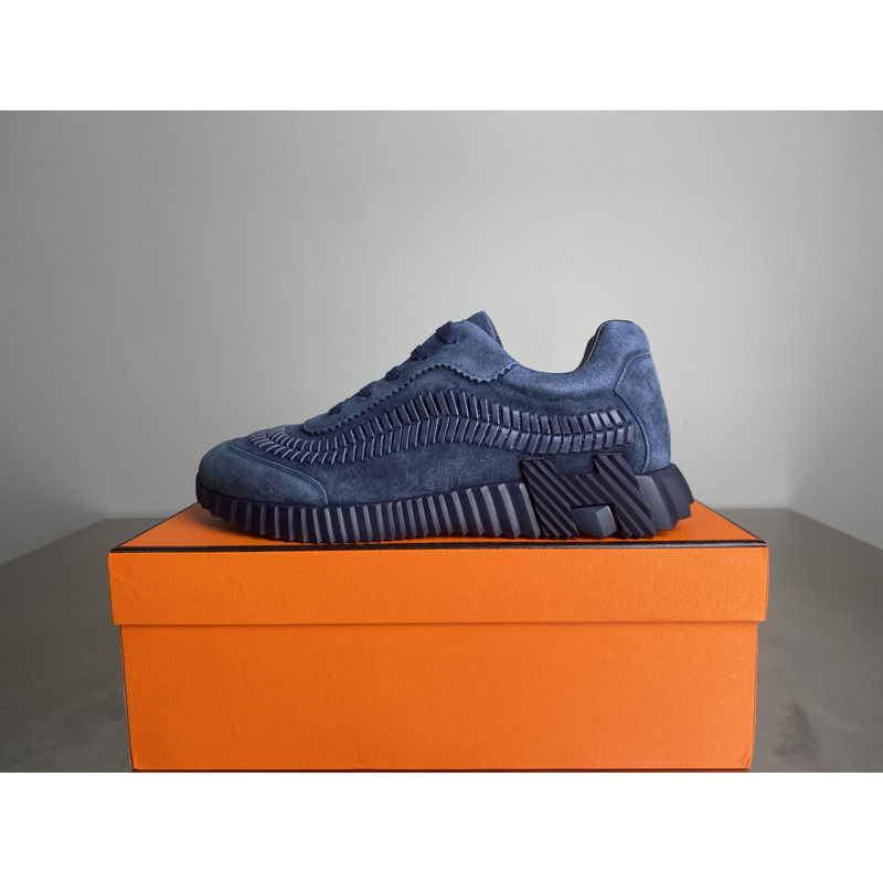 Hermes Bouncing Sneaker In Suede Goatskin Dark Blue