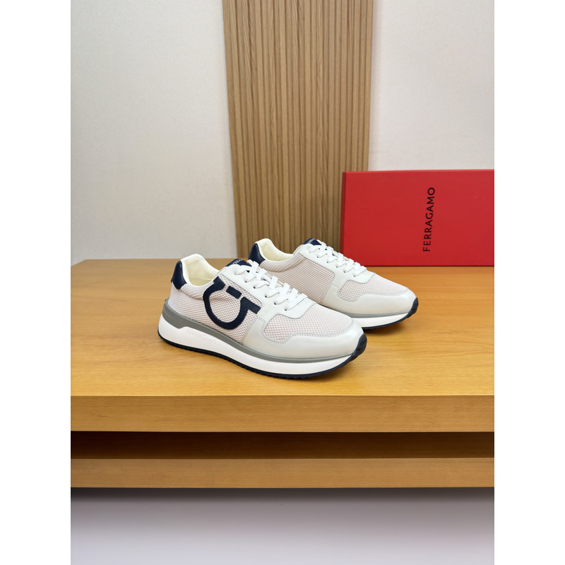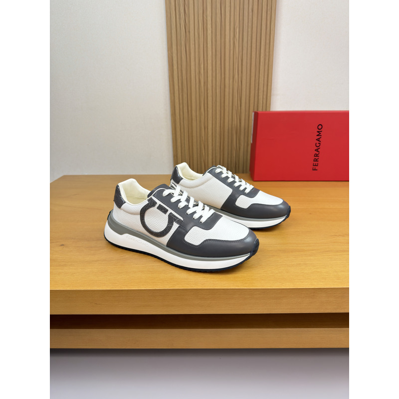 Ferragamo Low Top Sneaker With Gancini Ornament Sneaker In White/Grey