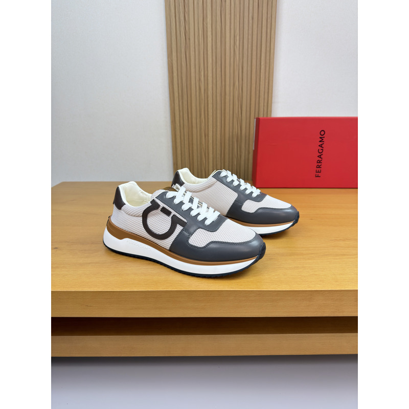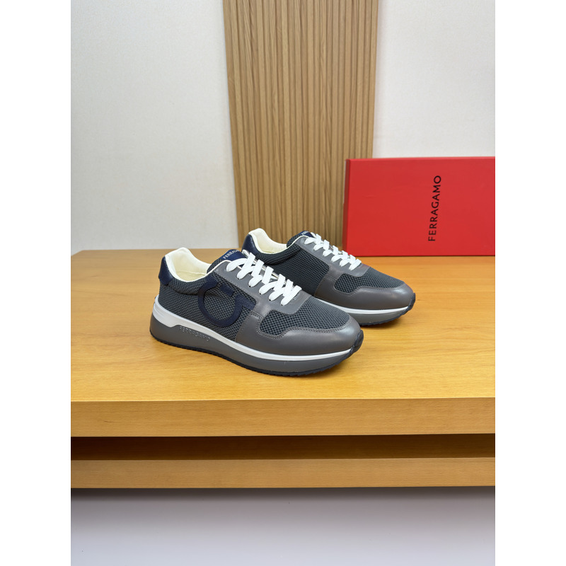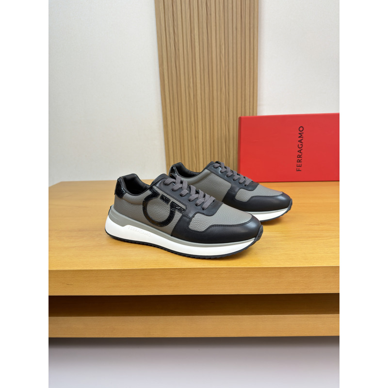 Ferragamo Low Cut Sneaker In Dark Grey & Black