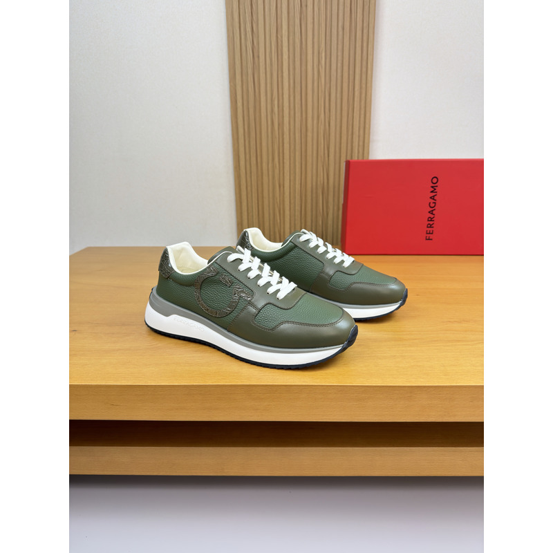 Ferragamo Low Top Sneaker With Gancini Ornament Sneaker In Olive Green