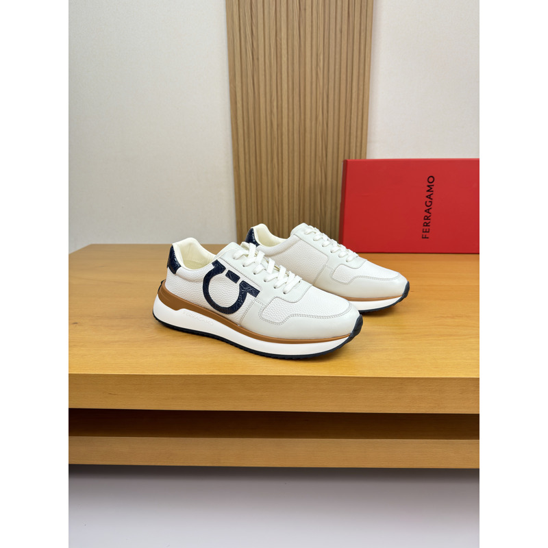Ferragamo Low Top Sneaker With Gancini Ornament Sneaker In White