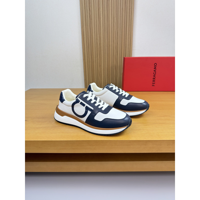 Ferragamo Low Top Sneaker With Gancini Ornament Sneaker In White/Navy Blue
