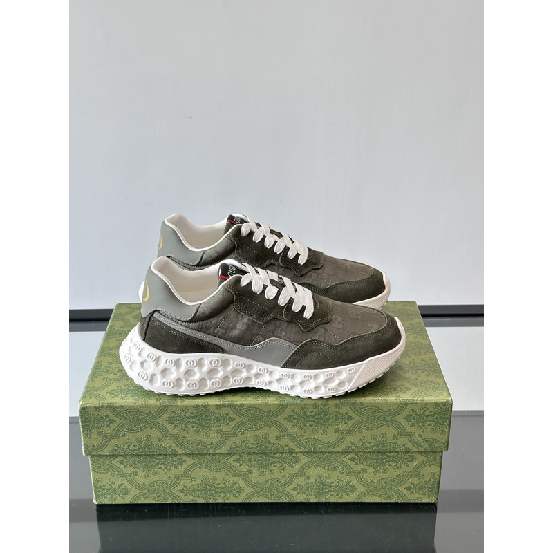 Gucci Olive Green GG Canvas And Suede Sneakers