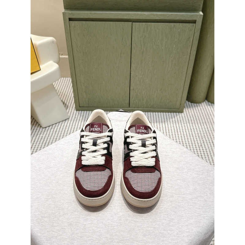 Fendi Match Trainers Low Tops In Red Suede With Houndstooth