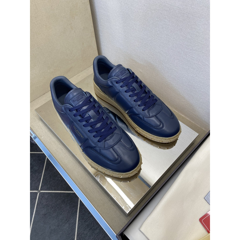 Valentino Open Skate Sneakers In Navy Blue Leather