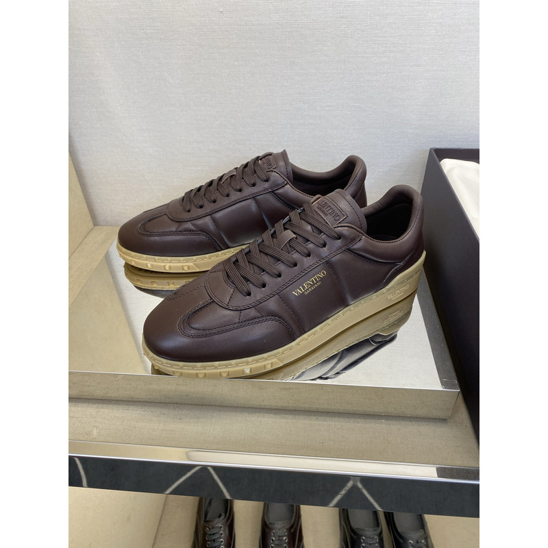 Valentino Open Skate Sneakers In Chocolate Brown Leather
