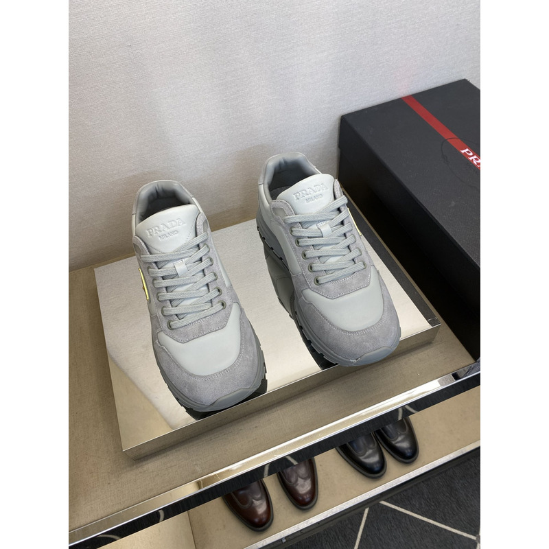 Prada Prax 01 Leather And Suede Sneakers Grey