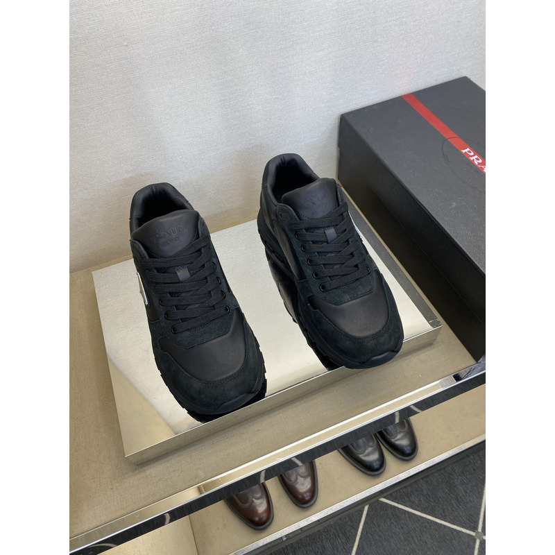 Prada Prax 01 Leather And Suede Sneakers Dark Blue