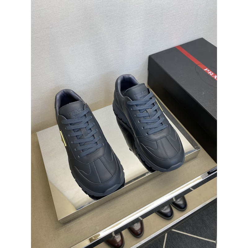 Prada Prax 01 Leather Sneakers In Dark Blue