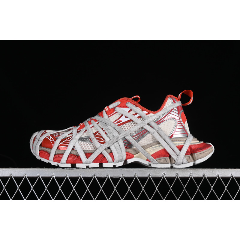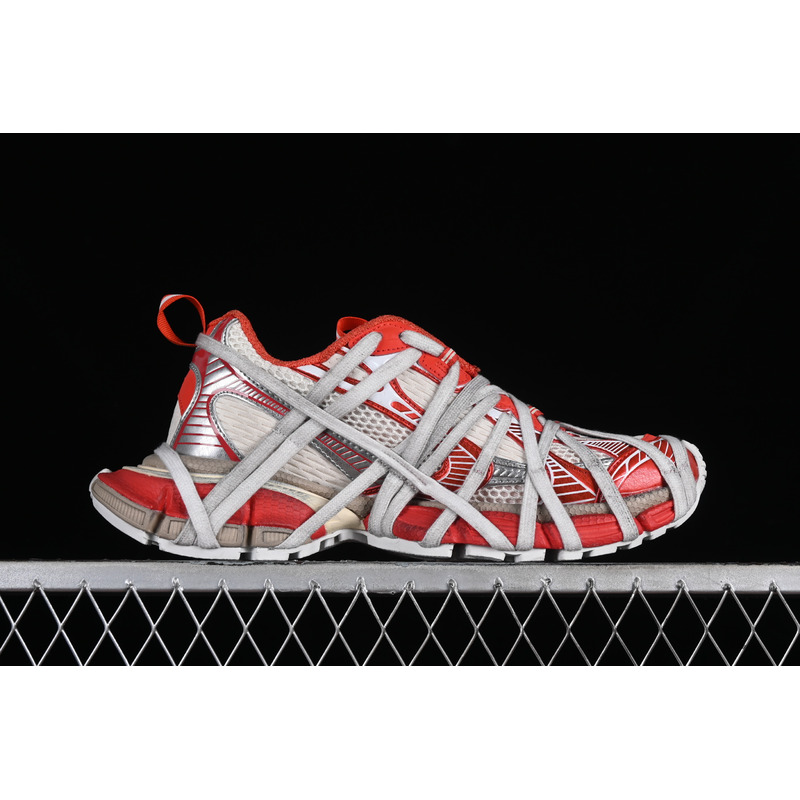 Balenciaga 3XL Extreme Lace Sneaker In Red And White With Light Grey Accents
