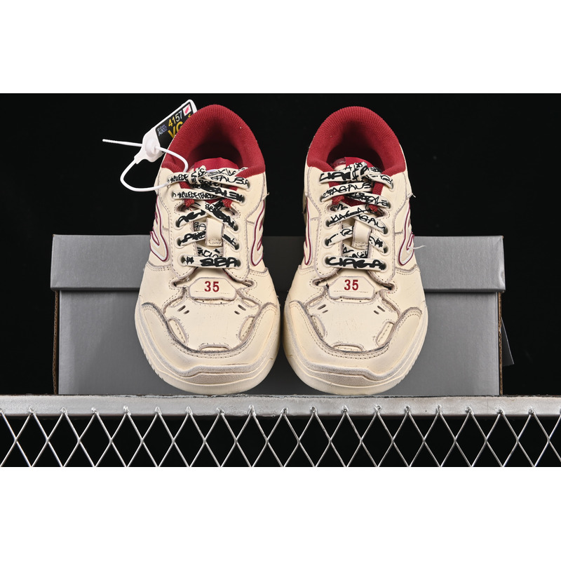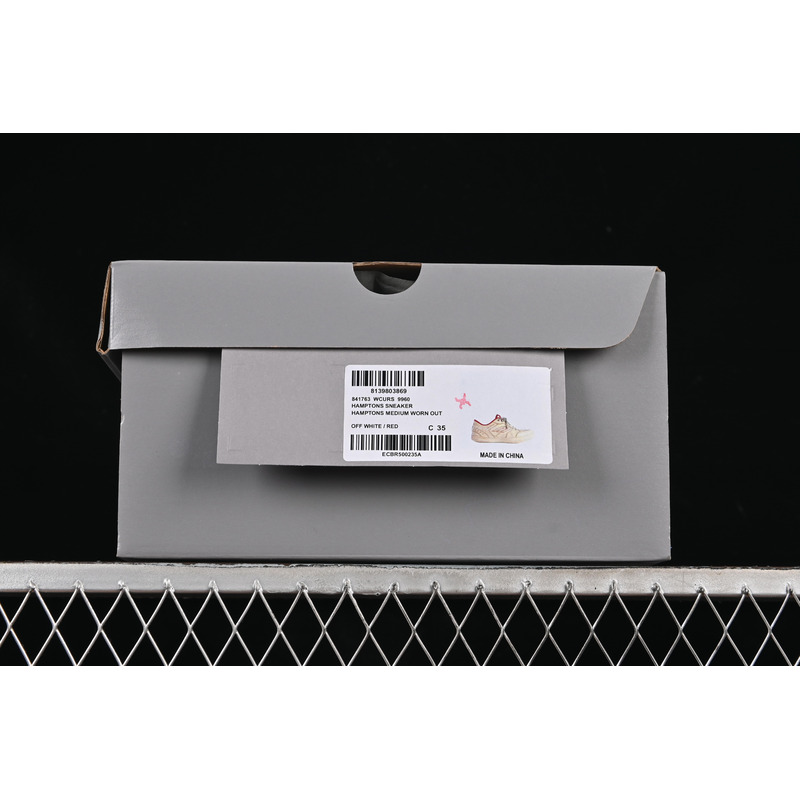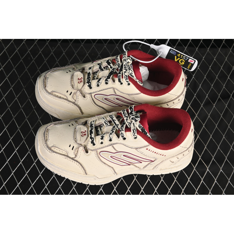 Balenciaga Hamptons Medium Worn-Out Sneaker In Off White/Red