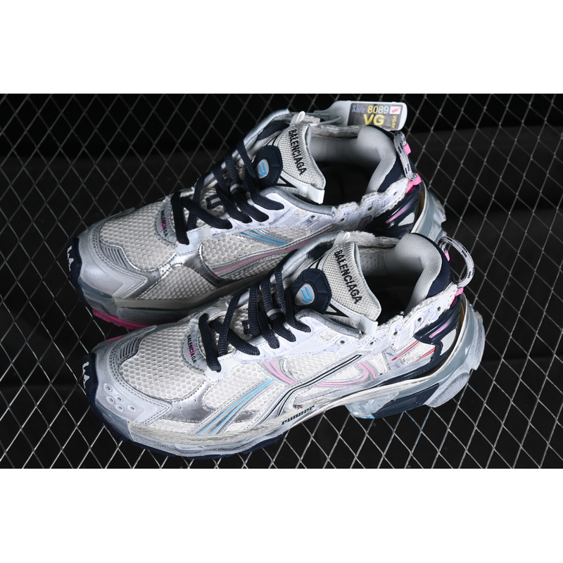 Balenciaga Runner Graffiti Sneakers In White/Light Pink/Silver