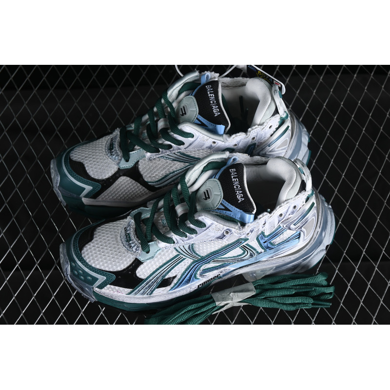 Balenciaga Runner Graffiti Sneakers In White/Light Turquoise/Black