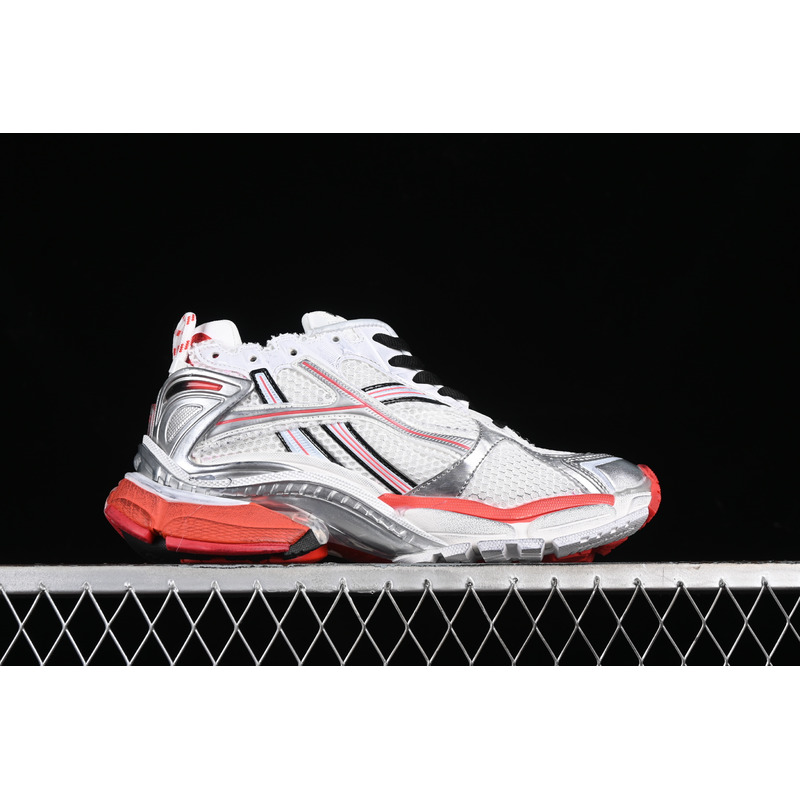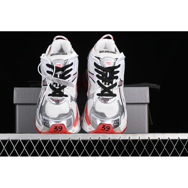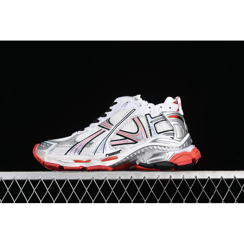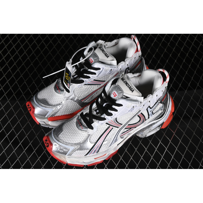 Balenciaga Runner Graffiti Sneakers In White/Red/Silver