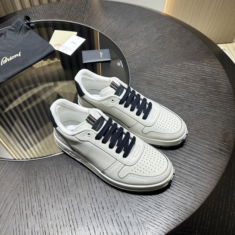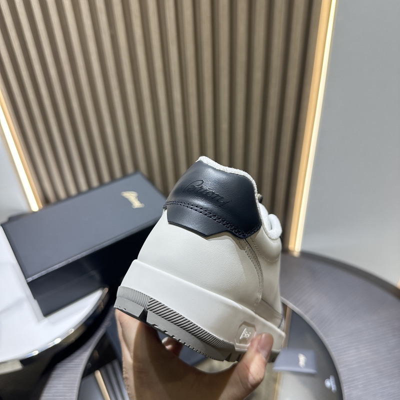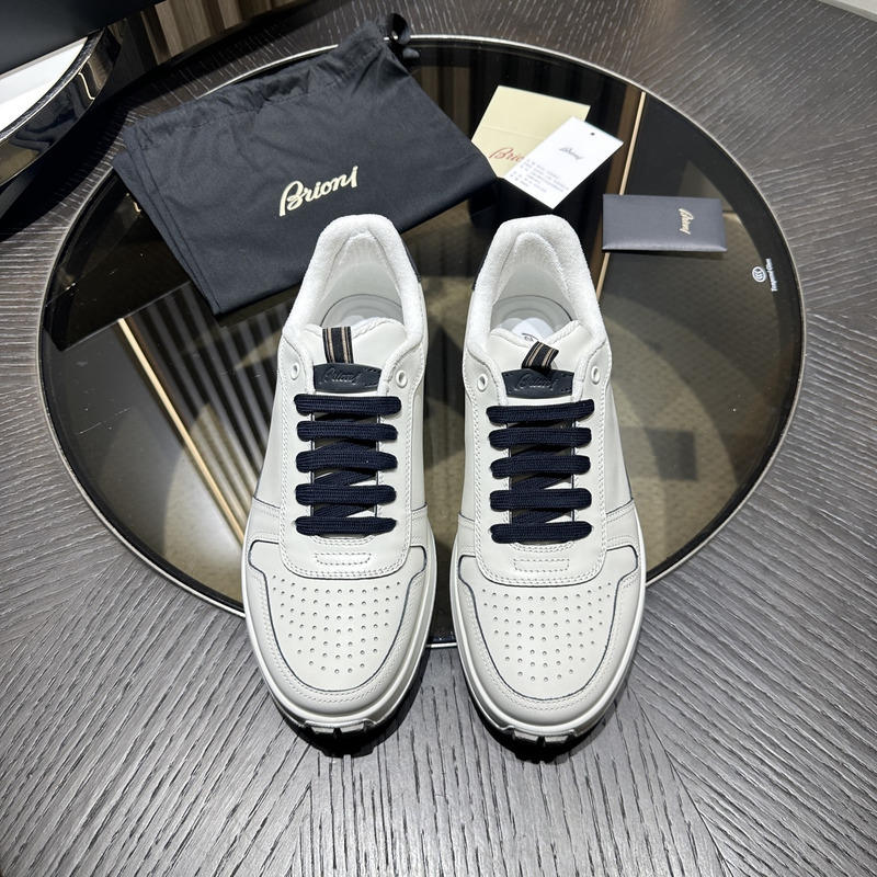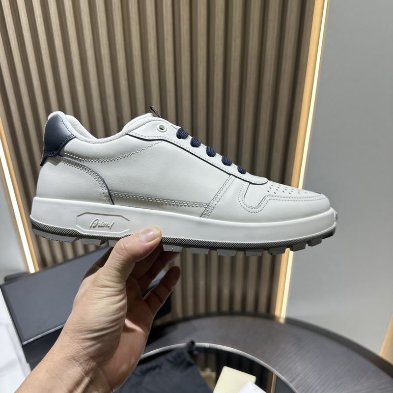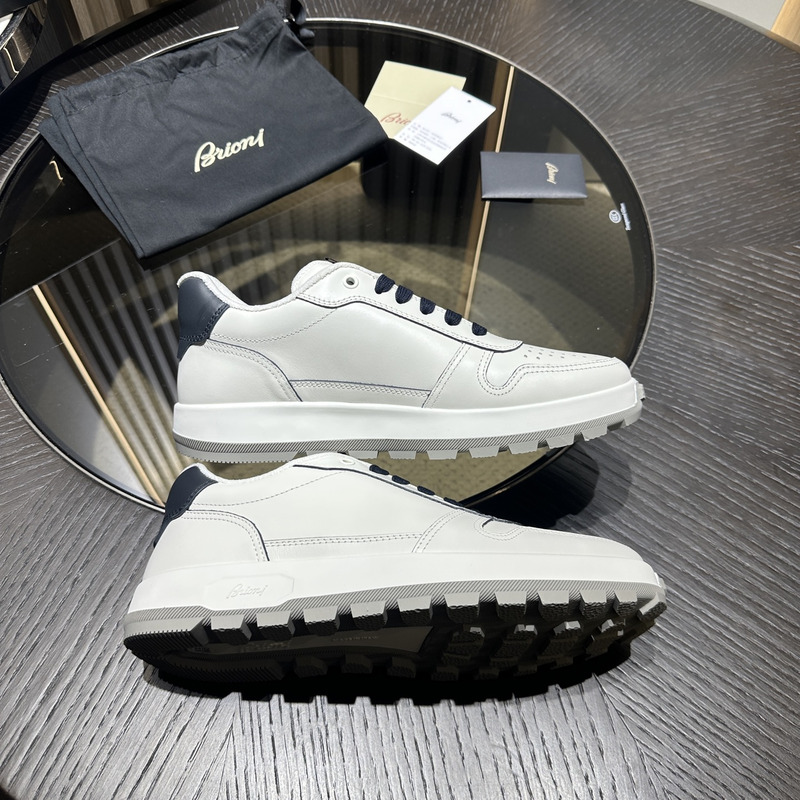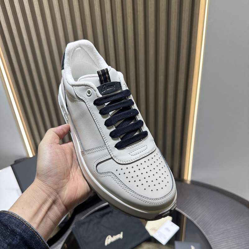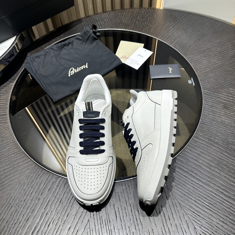 Brioni White And Midnight Blue Leather Crossing Sneakers