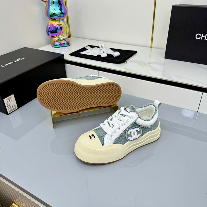Chanel Light Blue Denim Wave-Platform Sneakers