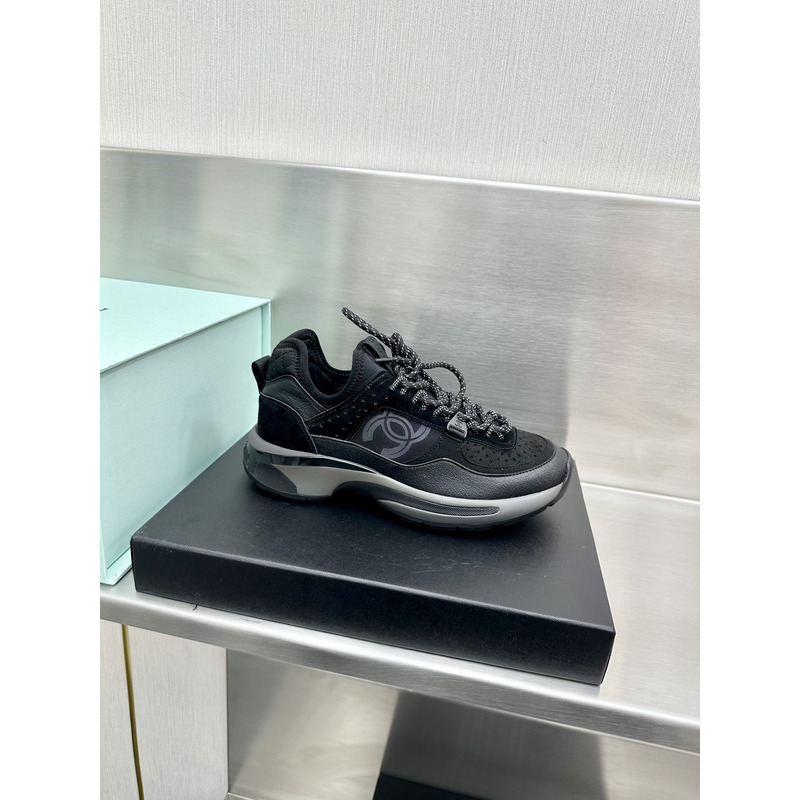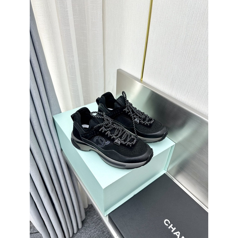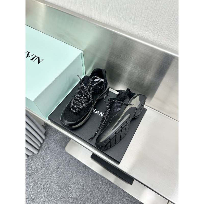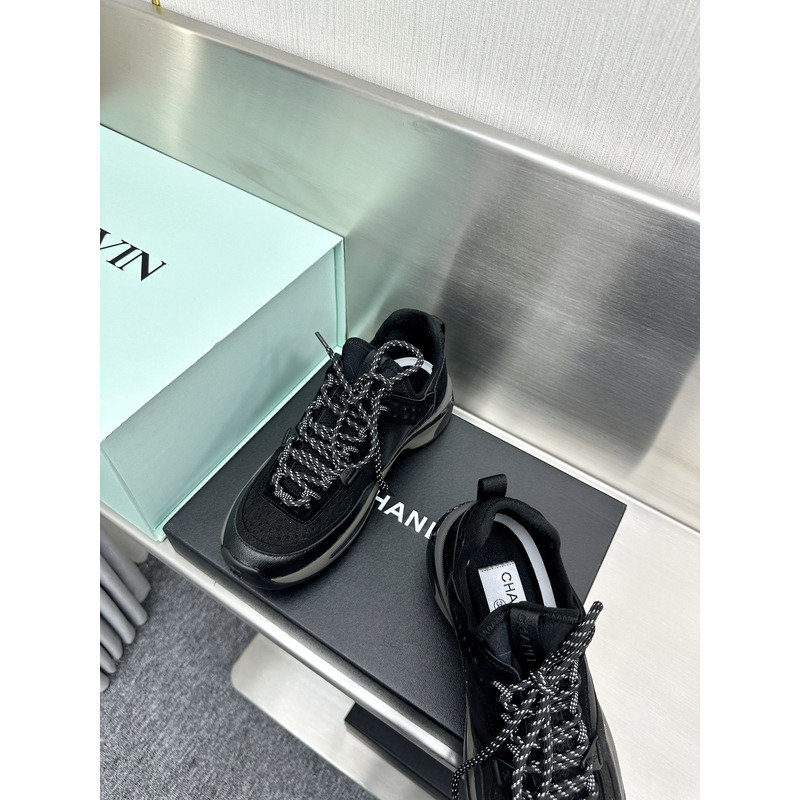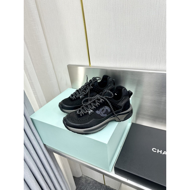 Chanel Low-Top Sneakers in Black Calfskin & Technical Mesh with CC Logo