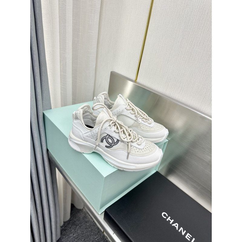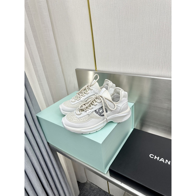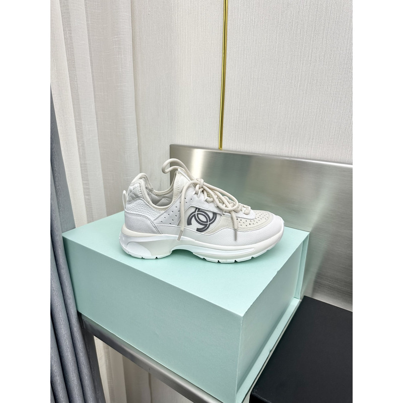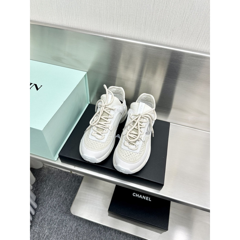Chanel Low-Top Sneakers in White Calfskin & Technical Mesh with CC Logo
