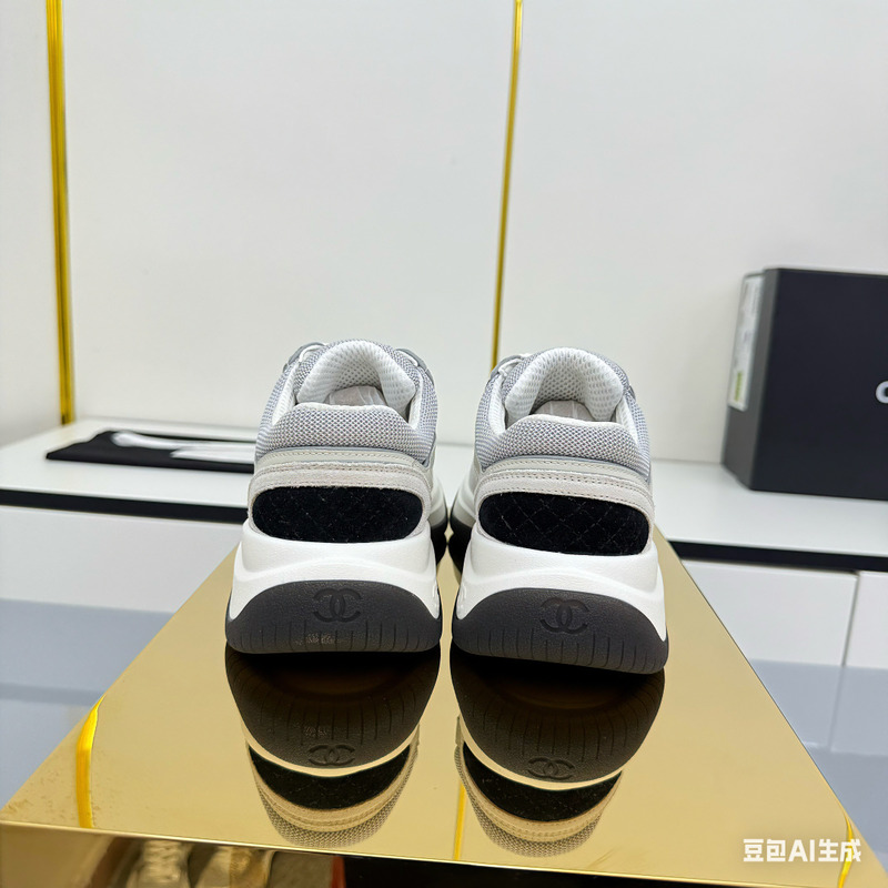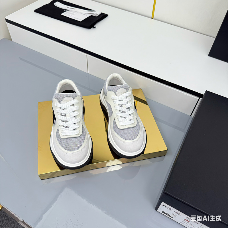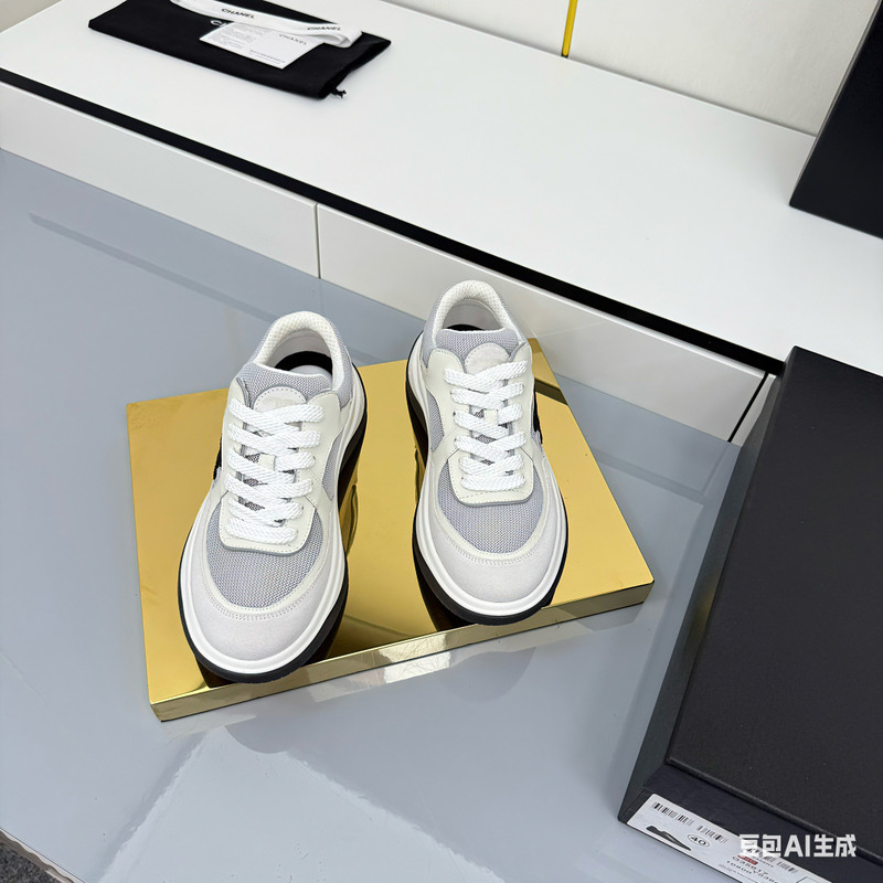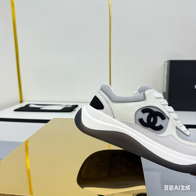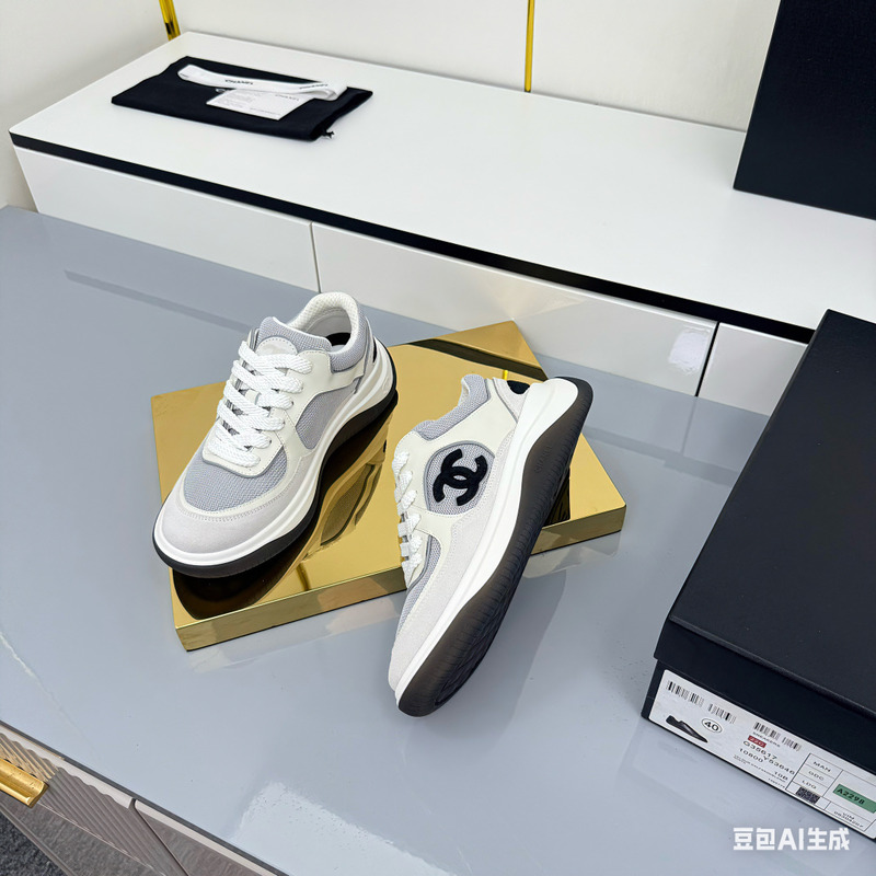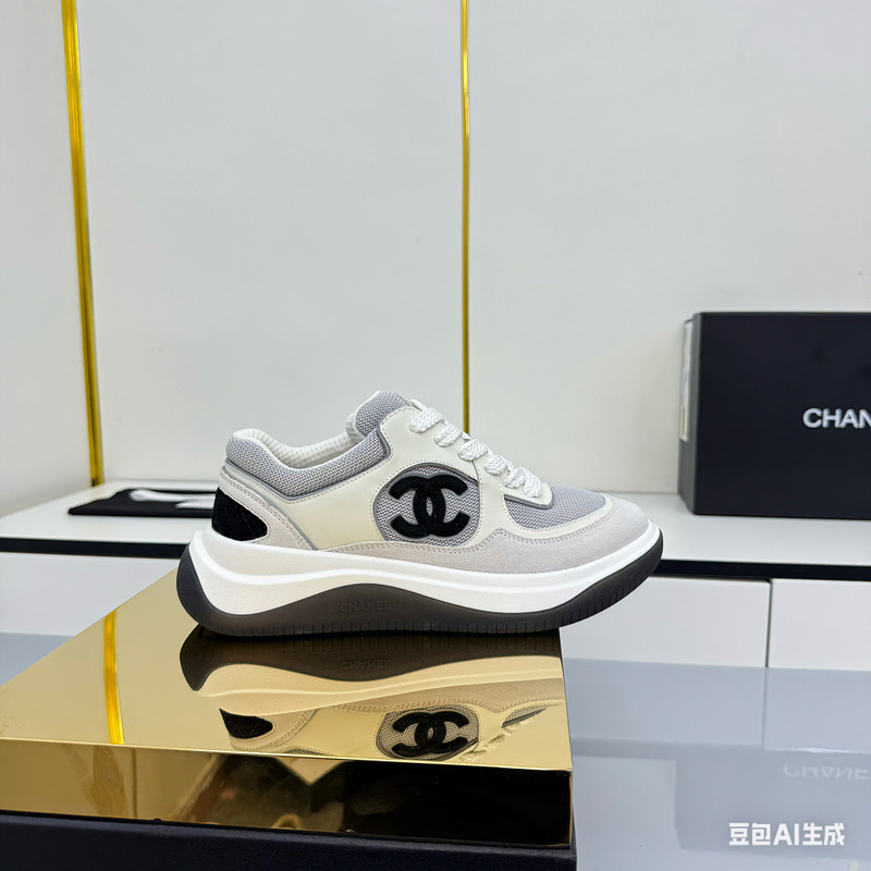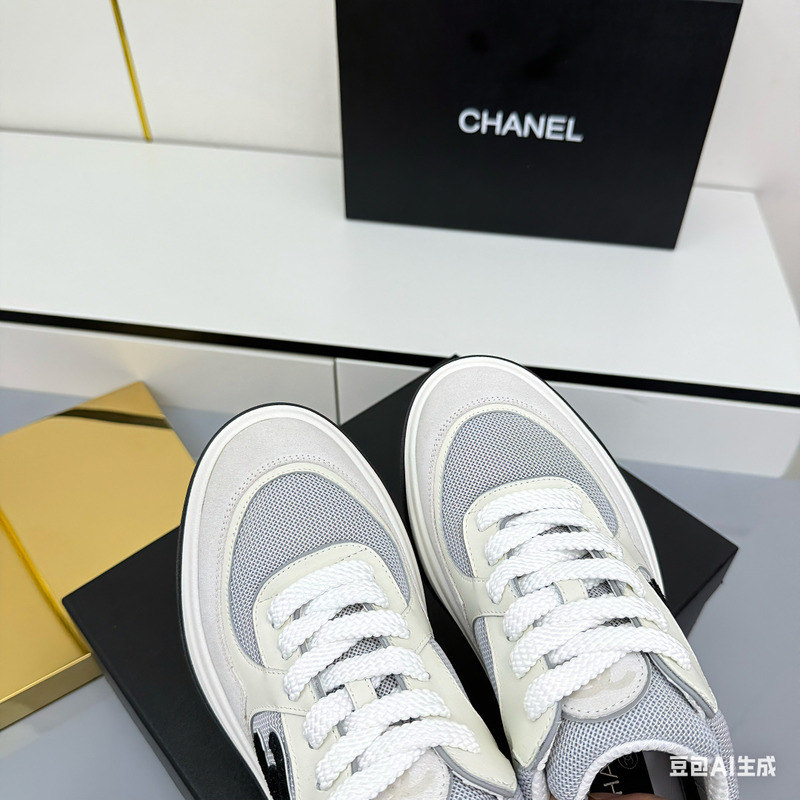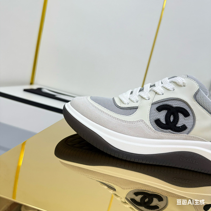 Chanel Mixed Fibers & Suede Leather CC Sneakers In Light Gray/Beige